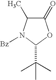 [0746] Example-HH-6) To a 1-methyl-2-pyrrolidinone (12 mL) solution of (3S, 6R)-6-isopropyl-3-methyl-5-phenyl-3,6-dihydro-2H-1,4-oxazin-2-one ( [0747]1H NMR (C6D6) δ0.57 (d, 3H), 0.89 (d, 3H), 1.30 (s, 3H), 1.65 (s, 3H), 1.8 (m, 2H), 2.0 (m, 2H), 2.1 (m, 1H), 3.22 (m, 2H), 4.88 (dt, vinyl, 1H), 5.49 (d, 1H), 7.1 (m, 3H), 7.6 (m, 2H).19F NMR (CDCl3) δ−110.37 (q, 1 F, J=21 Hz).