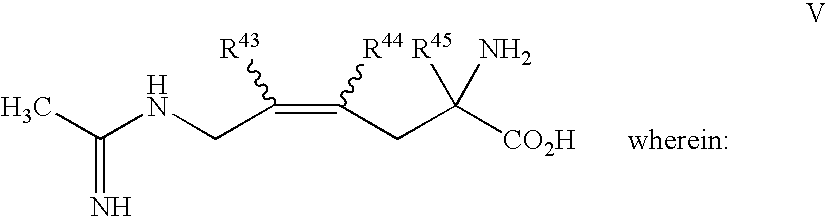 [0107] or a pharmaceutically acceptable salt or prodrug thereof. [0108] Another exemplary selective iNOS inhibitor useful in the present invention is represented by Formula V: