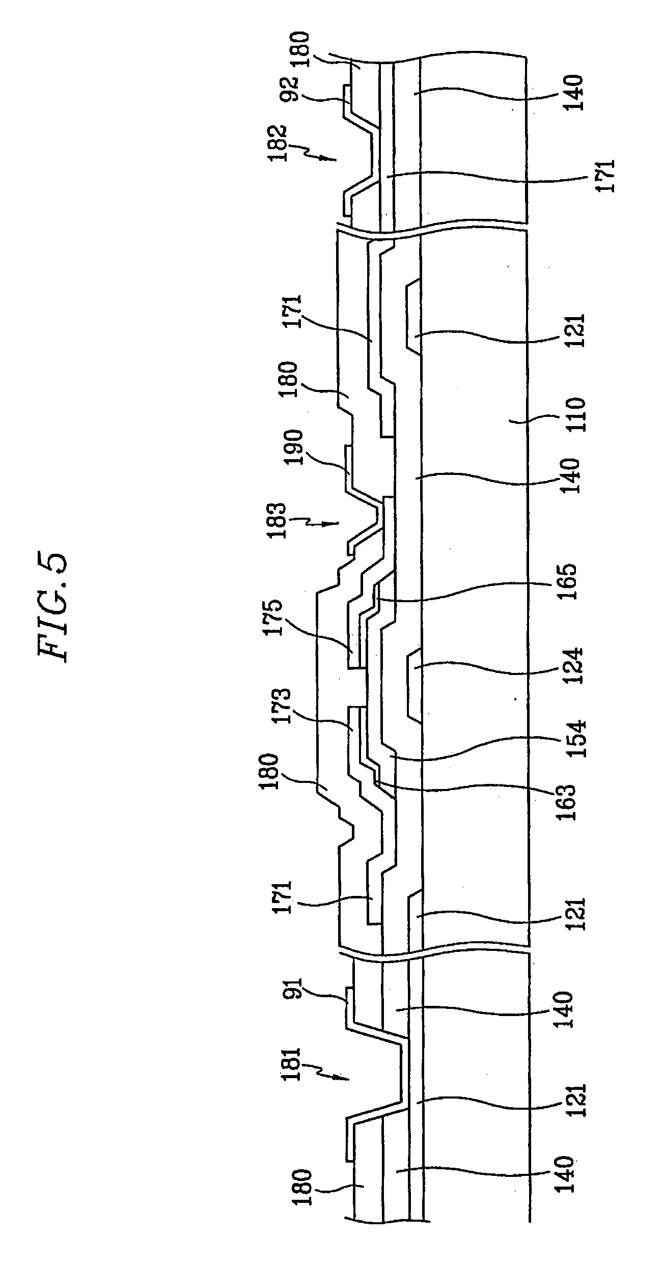 a first substrate; a plurality of control signal lines formed on the first substrate; a plurality of voltage transmission lines formed on the first substrate, wherein each voltage transmission line carries one of a plurality of predetermined voltages and the voltage transmission lines are arranged on the first substrate according to the magnitudes of the predetermined voltages IS carried by the voltage transmission lines; a switching element formed on the first substrate; and a plurality of display signal lines including at least one gate line and at least one data line intersecting the at least one gate line, wherein the display signal lines are formed on the first substrate and electrically connected to the switching element. 26. The display as recited in 27. The display as recited in 28. The display as recited in 29. The display as recited in 30. The display as recited in 31. The display as recited in 32. The display as recited in a signal controller for generating one of gate control signals and data control signals respectively transmitted via at least one gate control signal line and at least one data control signal line of the plurality of control signal lines; a common voltage generator for generating a common voltage transmitted via a common voltage transmission line of the plurality of voltage transmission lines; and a driving voltage generator for generating one of a gate-on voltage and a gate-off voltage respectively transmitted via a gate-on voltage transmission line and a gate-off voltage transmission line of the plurality of voltage transmission lines. 33. The display as recited in a gray voltage generator for generating at least one gray voltage transmitted via a gray voltage transmission line of the plurality of voltage transmission lines. 34. The display as recited in a gate driver including a gate driving integrated circuit for receiving gate control signals transmitted via at least one gate control signal line of the plurality of control signal lines, and for receiving one of a gate-on voltage and a gate-off voltage respectively transmitted via a gate-on voltage transmission line and a gate-off voltage transmission line of the plurality of voltage transmission lines. 35. The display as recited in a data driver including a data driving integrated circuit for receiving data control signals transmitted via at least one data control signal line of the plurality of control signal lines. 36. The display as recited in a data driver including a data driving integrated circuit for receiving at least one gray voltage transmitted via a gray voltage transmission line of the plurality of voltage transmission lines. 37. The display as recited in an electrode for receiving a common voltage transmitted via a common voltage transmission line of the plurality of voltage transmission lines. 38. The display as recited in 39. The display as recited in 40. The display as recited in 41. The display as recited in 42. The display as recited in a first electrode formed on the first substrate, wherein the first electrode is electrically connected to the switching element; a second substrate spaced apart from the first substrate by a gap, the gap including liquid crystal; and a second electrode formed on the second substrate. 43. The display as recited in a gate driver including a gate driving integrated circuit for receiving one of a gate-on voltage and a gate-off voltage via respective gate-on and gate-off voltage transmission lines of the plurality of voltage transmission lines, and for transmitting one of the gate-on voltage and the gate-off voltage to the at least one gate line; and a data driver including a data driving integrated circuit for receiving at least one gray voltage via a gray voltage transmission line of the plurality of voltage transmission lines and for transmitting the at least one gray voltage to the at least one data line. 44. The display as recited in 45. The display as recited in 46. The display as recited in 47. The display as recited in 48. The display as recited in a first pad connected to an end of a first voltage transmission line of the plurality of voltage transmission lines, the first voltage transmission line carrying a first voltage of the plurality of predetermined voltages; a second pad connected to an end of a second voltage transmission line of the plurality of voltage transmission lines, the second voltage transmission line carrying a second voltage of the plurality of predetermined voltages; and an isolated pad interposed between the first and second pads, wherein the isolated pad is electrically connected to at least one redundant driving signal line and the at least one redundant driving signal line carries a voltage equal to the higher one of the first and second voltages. 49. An electronic device with conductive lines for transmitting electrical signals comprising: