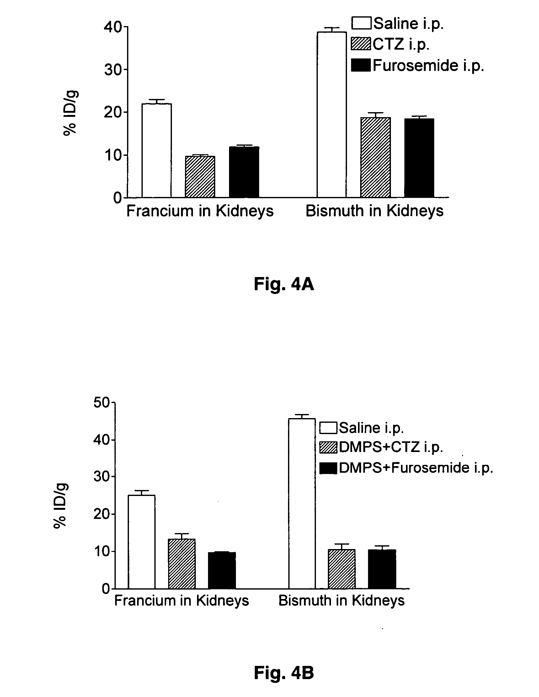 56. The method of claim 50, wherein said diuretic inhibits reabsorption of the225Ac daughter francium-211.