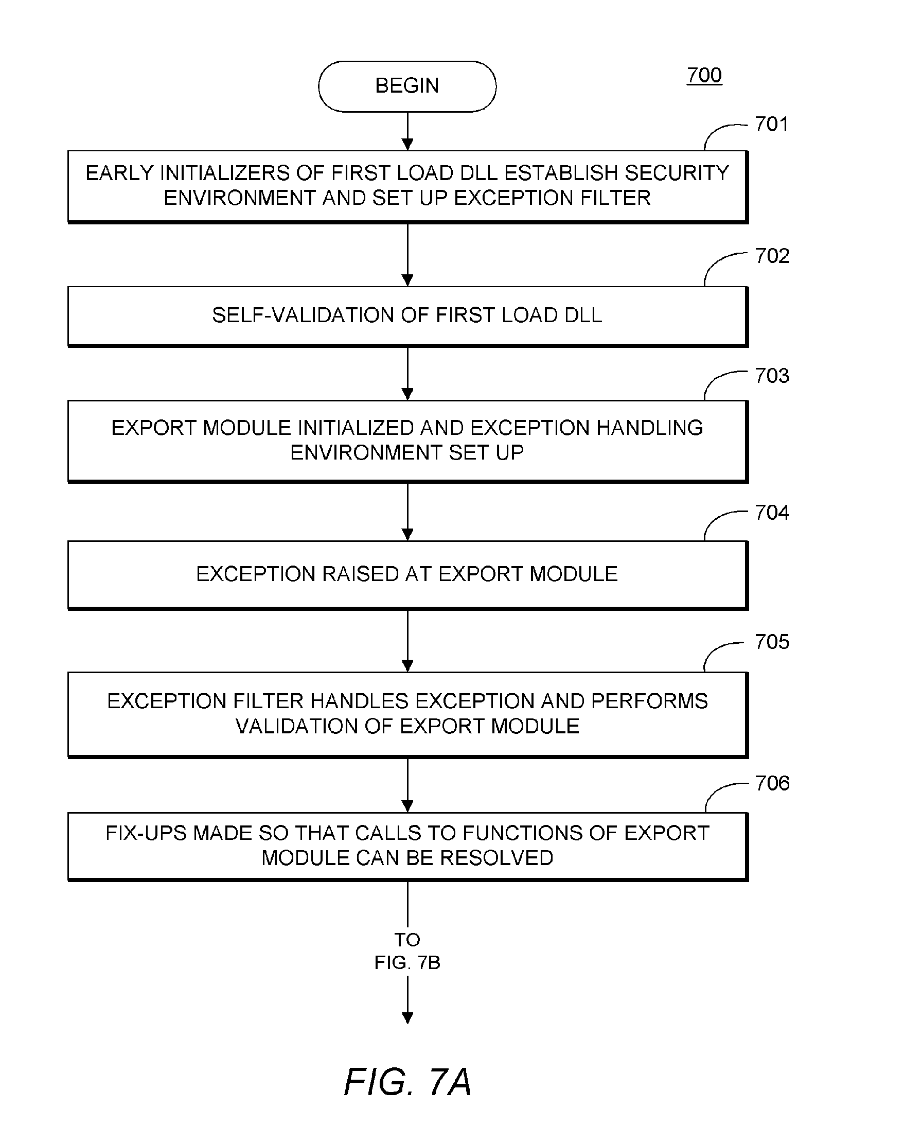 extracting export information about the exported function of the program; securing the extracted export information; intercepting an attempt to access the exported function by an importer; authenticating the importer for determining whether to permit access to the exported function; and if the importer is authenticated, providing access to the exported function based on the secured extracted export information. 46. The method of 47. The method of 48. The method of if the importer cannot be authenticated, blocking access to the exported function. 49. The method of 50. The method of generating a digital signature for at least some executable modules of the program, so as to enable authentication of said at least some executable modules. 51. The method of 52. The method of 53. The method of authenticating a program module including the exported function before providing access to the exported function. 54. The method of 55. The method of 56. The method of 57. The method of 58. The method of 59. A computer-readable medium having processor-executable instructions for performing the method of 60. A downloadable set of processor-executable instructions for performing the method of