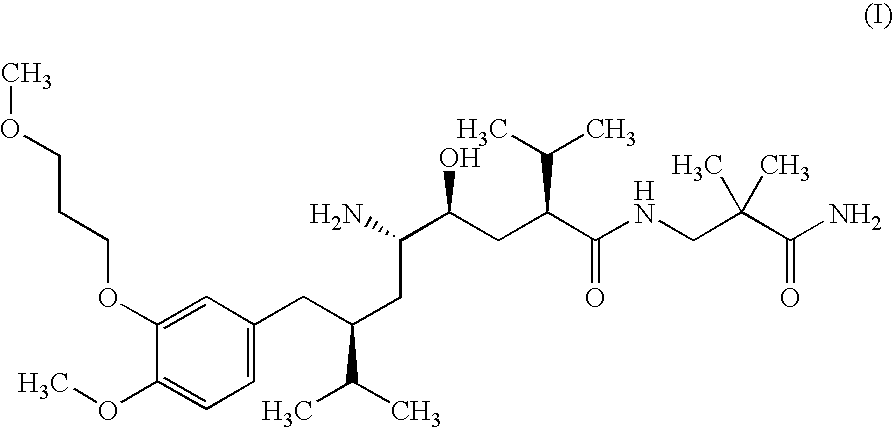 The renin inhibitor of formula (I), chemically defined as 2(S),4(S),5(S),7(S)-N-(3-amino-2,2-dimethyl-3-oxopropyl)-2,7-di(1-methylethyl)-4-hydroxy-5-amino-8-[4-methoxy-3-(3-methoxy-propoxy)phenyl]-octanamide, is specifically disclosed in EP 678503 A. Especially preferred is the hemi-fumarate salt thereof.