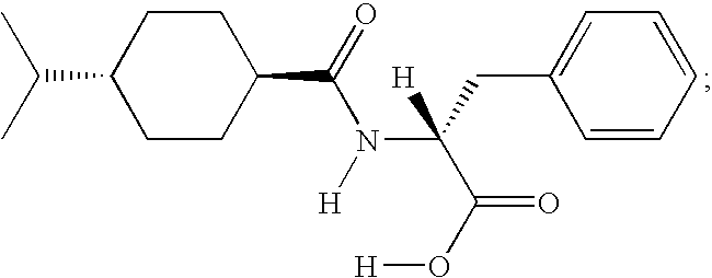 The term nateglinide likewise comprises crystal modifications such as disclosed in EP 0526171 B1 or U.S. Pat. No. 5,488,510, respectively, the subject matter of which, especially with respect to the identification, manufacture and characterization of crystal modifications, is herewith incorporated by reference to this application, especially the subject matter of claims 8 to 10 (being directed to the H-form crystal modification) as well as the corresponding references to the B-form crystal modification.