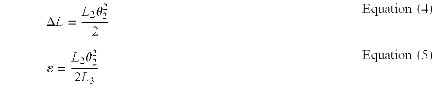 Referring to L2 is less than L1. However, the magnitude of the deflection of second end 23 of membrane 20 is about the same as the magnitude of the deflection of second end 13 of cantilever 10. Therefore, the reflective membrane 20 rotation, denoted by θ2, is greater than the cantilever 10 rotation θ1. Since membrane 20 need not be configured to interact with its environment (e.g., to sense physical, biological, or chemical materials or interactions), its properties may be chosen to enhance rotation θ2, and thus to increase the change in position of the reflected beam upon cantilever deflection. Therefore, the present sensor system provides enhanced optical sensitivity over existing sensors. The reflective membrane rotation θ2 may be determined by first analyzing the cantilever deflection without a membrane (see Equations 1, 2, and 3 below outline the relationship between the curvature (K), deflection (δ1), and rotation (θ1) of the cantilever tip 13 (without the reflective membrane 20 structure attached thereto), due to the induced surface stresses (γ). The deflection of the cantilever tip 13 with the reflective membrane structure 20 attached thereto is determined using the superposition principle. In Tensile force F in the reflective membrane due to this strain is given by Equation (6) below. This tensile force can be resolved into normal and tangential forces FX and FY, which are given by Equations (7) and (8). The free body diagram of the composite structure is shown in The deflection 62 and rotation θ2 of the reflective membrane are related as shown in Equation (9) below. The deflection of the cantilever δC due to the force FY is given by Equation (10). The vertical force FY tries to bend the suspended cantilever in a direction opposite to δ1 (see The geometrical constraint on the system requires that the reflective membrane deflection δ2 and cantilever deflection δ1′ are the same and given by Equation (12) below: