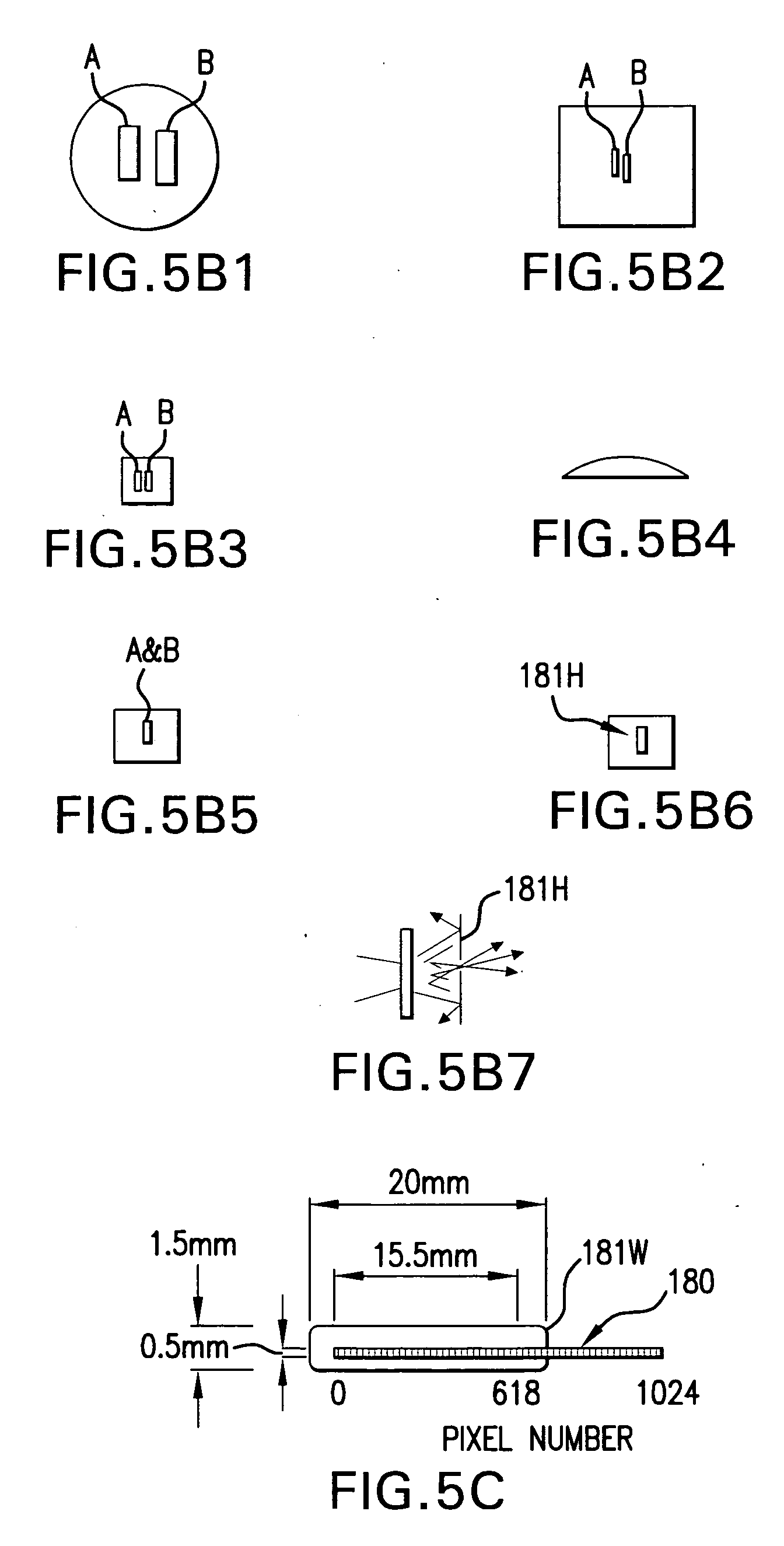 FIGS. 5B1-B7 shows schematically aspects of the operation of a wavementer according to FIG. 5;