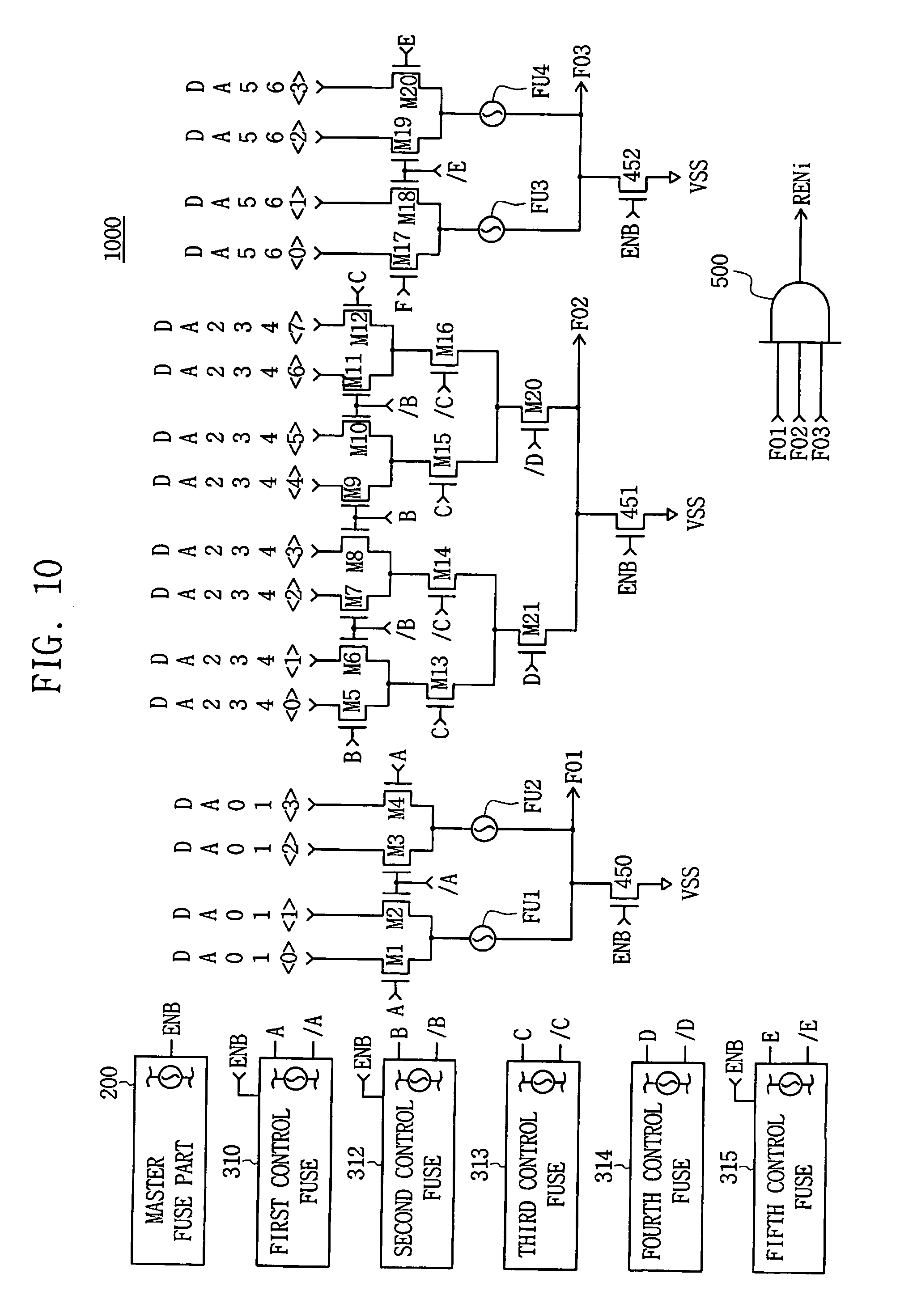 In the example embodiment of FIG. 11, fuses may be disposed in a one-to-one ratio with respect to the decoded address bits. Fuses may also be disposed corresponding to the portion of address bits before decoding.