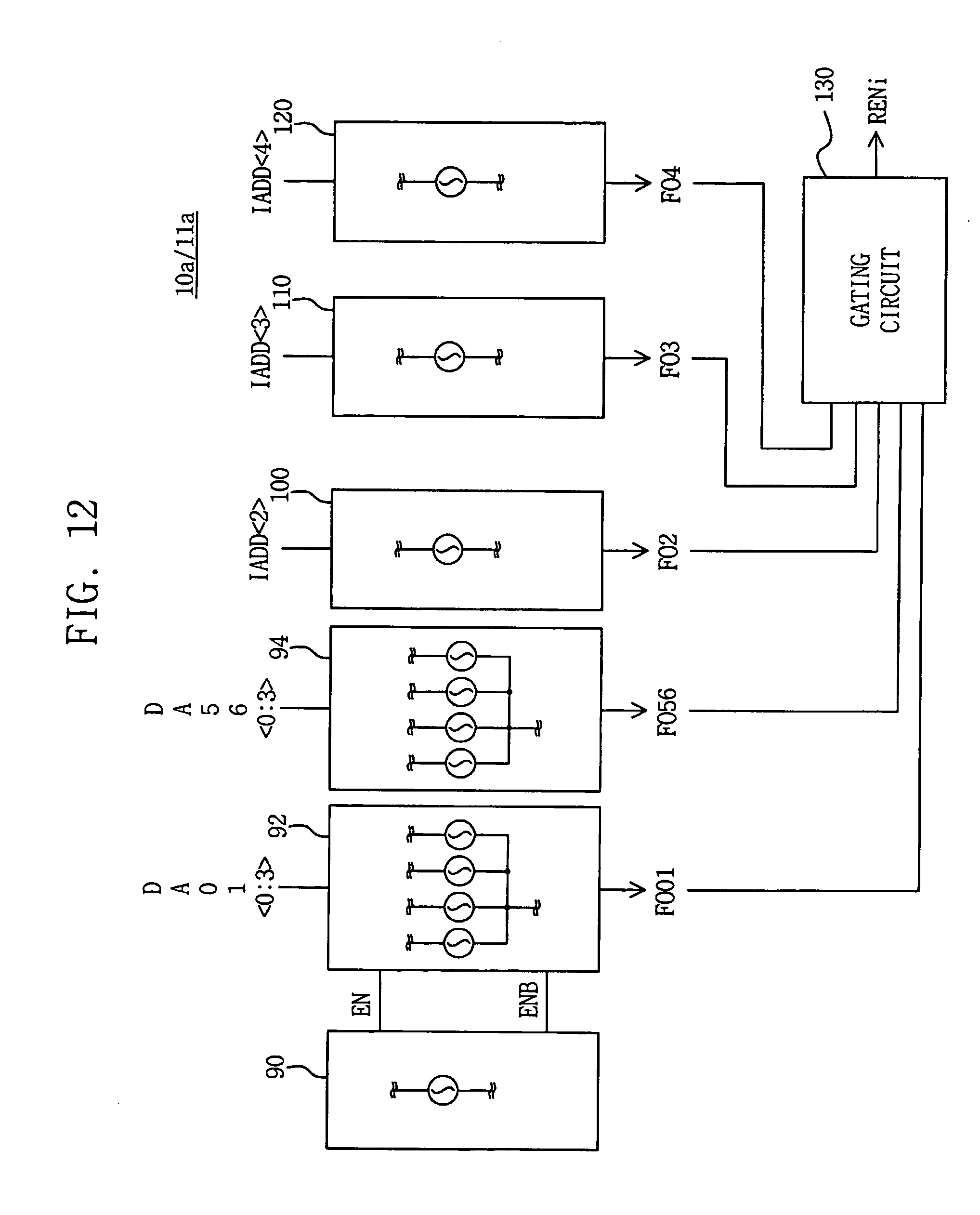In the example embodiment of FIGS. 12 and 13, the first fuse box circuits 92 and 94 may include program fuses disposed corresponding to respective decoding signal bits DA01<0:3> and DA56<0:3. First fuse box circuits 92 and 94 may generate first fuse box output signals FO01 and FO56, respectively, in response to the operation enable signals EN/ENB.