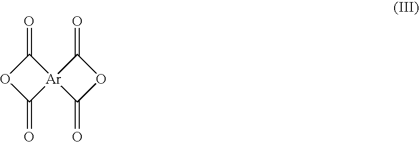 in which Ar represents a quadrivalent organic group having an aromatic ring, or its derivative, different from the aromatic tetracarboxylic acid dianhydride represented by formula (I) and the derivative thereof.
