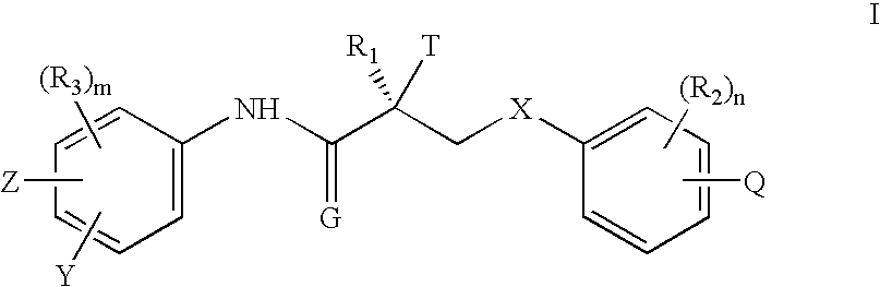X is a bond, O, CH2, NH, S, Se, PR, NO or NR; T is OH, OR, —NHCOCH3, or NHCOR Z is NO2, CN, COOH, COR, NHCOR or CONHR; Y is CF3, F, I, Br, Cl, CN, CR3 or SnR3; Q is CN SCN, NCS, OCN, or NCO; R is alkyl, haloalkyl, dihaloalkyl, trihaloalkyl, CH2F, CHF2, CF3, CF2CF3, aryl, phenyl, halogen, alkenyl or OH; and R1 is CH3, CH2F, CHF2, CF3, CH2CH3, or CF2CF3. 60. The composition according to 61. The composition according to 62. The composition according to 63. The composition according to 64. The composition according to 65. The composition according to 66. The composition according to 67. The composition according to 68. The composition according to 69. The composition according to 70. The composition according to 71. The composition according to 72. The composition according to 73. The composition according to 74. The composition according to 75. The composition according to 76. The composition according to 77. The composition according to 78. The composition according to 79. The composition according to 80. The composition according to 81. The composition according to 82. The composition according to 83. The composition according to 84. The composition according to 85. The composition according to 86. The composition according to 87. The composition according to 88. The composition according to 89.-93. (canceled) 93. A method of treating prostate cancer in a subject, comprising the step of administering to said subject the composition of 94. A method of treating the recurrence of prostate cancer in a subject suffering from prostate cancer, comprising the step of administering to said subject the composition of 95. A method of treating benign prostatic hyperplasia in a subject, comprising the step of administering to said subject the composition of 96. A method of inhibiting, suppressing or preventing benign prostatic hyperplasia in a subject, comprising the step of administering to said subject the composition of 97. A method of treating a subject having a hormone related condition, comprising the step of administering to said subject the composition of 98-99. (canceled) 100. A method f treating polycystic ovarian syndrome in a female subject, comprising the step of administering to said subject the composition of 101. A methods of suppressing, inhibiting, delaying onset or preventing diabetes, breast cancer, endometrial carcinoma or cardiovascular disease in a female subject suffereing from polycystic ovarian syndrome, comprising the step of administering to said subject the composition of