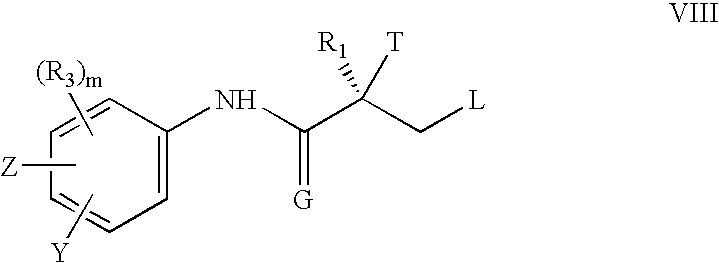 wherein Z, Y, G, R1, T, R3 and m are as defined above and L is a leaving group, with a compound of formula IX: