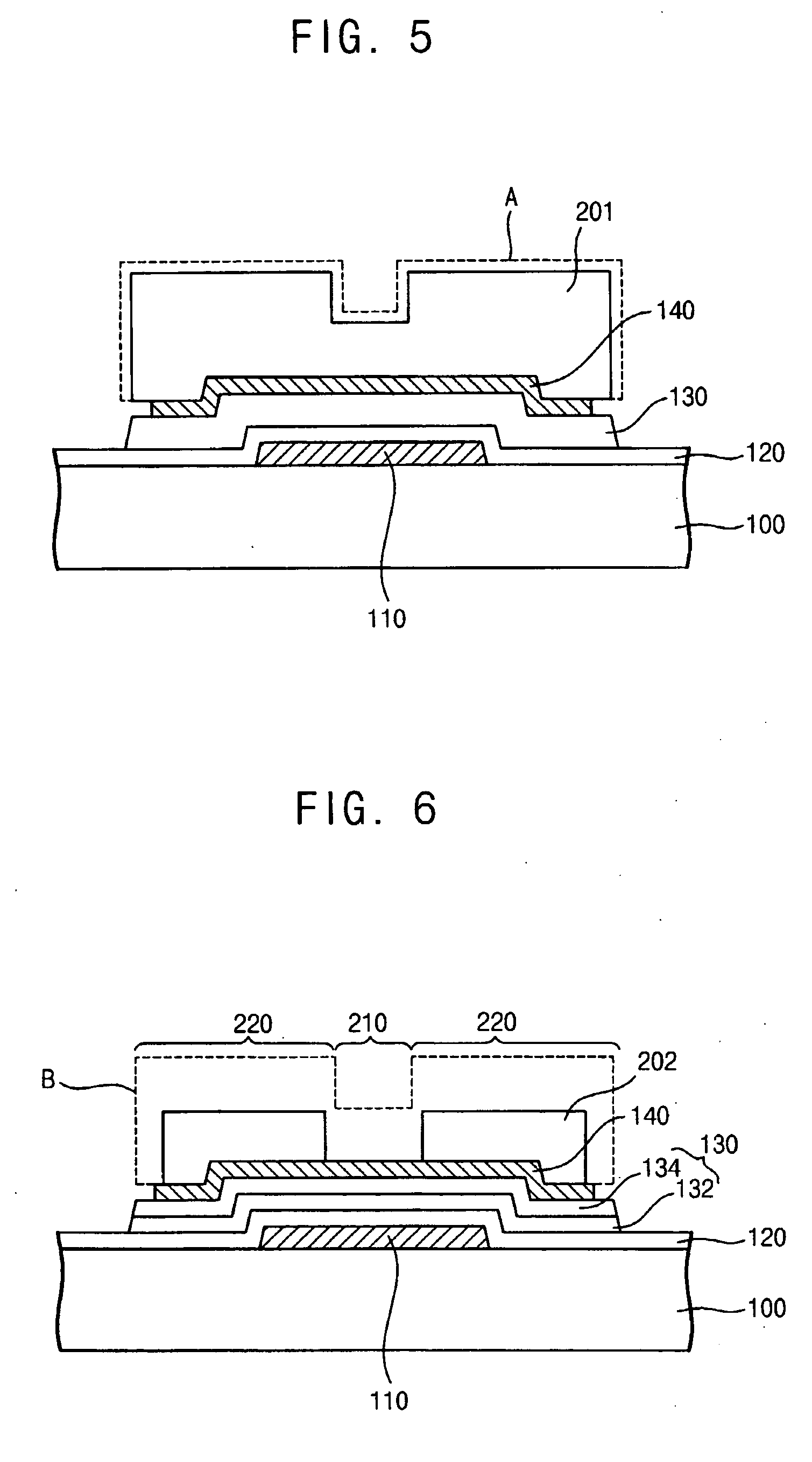 Referring to table 1, it is noted that the photoresist films of Examples 1 to 4 have relatively high sensitivity and resolution, and relatively low contrast in comparison with the photoresist film of the Comparative Example. Furthermore, it is noted that the angles of the central portions of Examples 1 to 4 are no less than about 55° when a halftone is formed by a slit exposure. Also, the angles of the edge portions of Examples 1 to 4 are maintained relatively large. The photoresist films of Examples 1 to 4 have relatively improved developing characteristics so that a residue does not remain after developing. A method of manufacturing a thin-film transistor (TFT) substrate according to an exemplary embodiment of the present invention is described more fully hereinafter with reference to the accompanying drawings. Method of Manufacturing a TFT Substrate Referring to The first metal layer formed on the substrate 100 is patterned through a photolithography process to form the gate electrode pattern 110. Referring to A photoresist composition is coated on the second metal layer 140 and is pre-baked at a temperature of about 70 to about 110° C. for about 1 to about 15 minutes to form the photoresist film 200. The photoresist composition is a negative photoresist composition. Thus, an exposed portion of the photoresist film is developed by a developing solution. The photoresist composition includes about 10 to about 70% by weight of a binder resin including a phenol-based polymer, about 0.5 to about 10% by weight of a photo-acid generator, about 1 to about 20% by weight of a cross-linker, about 0.1 to about 5% by weight of an azo-based dye and about 10 to about 80% by weight of a solvent. The azo-based dye absorbs light energy during a slit exposure to reduce the contrast of a photoresist film so that a halftone photoresist film is stably formed. For example, the azo-based dye may include an azo-based compound represented by the following chemical formula (2):