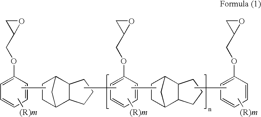 Epoxy resin (A): HP-7200H (manufactured by 66.5 parts Dainippon Ink and Chemicals, Inc.) Epoxy resin (B): EHPE 3150 (epoxy equivalent of 28.5 parts about 180) (manufactured by Daicel Chemical Industries, Ltd.) Photocationic polymerization initiator: SP-172 1.5 parts (manufactured by Adeka Corporation) Additive (silane coupling agent): A-187 3.5 parts (manufactured by Nihonunika Corporation) Example 2