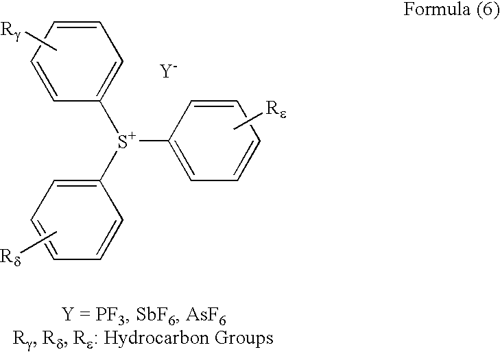 Epoxy resin (A): HP-7200 (manufactured by Dainippon 47.5 parts Ink and Chemicals, Inc.) Epoxy resin (B): EHPE 3150 (manufactured by Daicel 47.5 parts Chemical Industries, Ltd.) Photocationic polymerization initiator: SP-172 1.5 parts (manufactured by Adeka Corporation) Additive (silane coupling agent): A-187 3.5 parts (manufactured by Nihonunika Corporation) Example 7