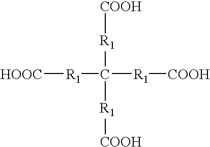 where R1 can be the same or different at each location and is selected from the group consisting of hydrogen, polyalkylene oxides, polyethylene glycols having degradable linkages, and polyethylene oxide-polypropylene oxide copolymers;