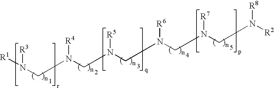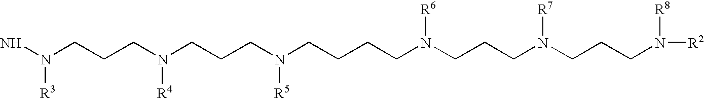 R11═CHC(R10)CH2—NHC3H6NHC3H6NHC4H8NHC3H6NHC3H6NH—(CH2)C(R10)═CHR11 EXAMPLE 1
