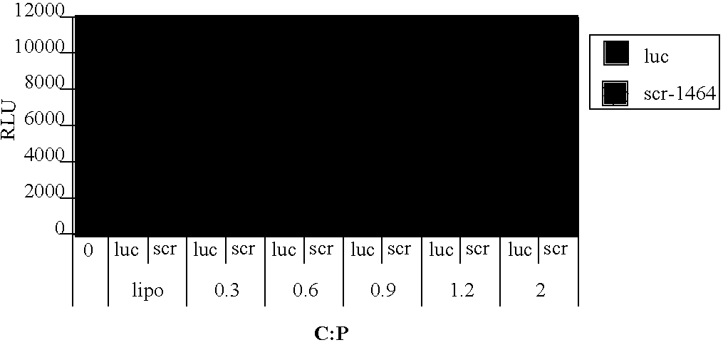 The samples were freeze-dried again and dissolved in HBS (Hepes buffered Saline, 10 mM HEPES, 150 mM NaCl, pH 7.3. From these solutions concentrations were determined against unmodified polymer using the copper assay. Size Determinations via Dynamic Laser Light Scattering 0.5 microg of siRNA were complexed with the respective amount of OEI in a total volume of 50 microliters. Experiments were carried out in HBS.