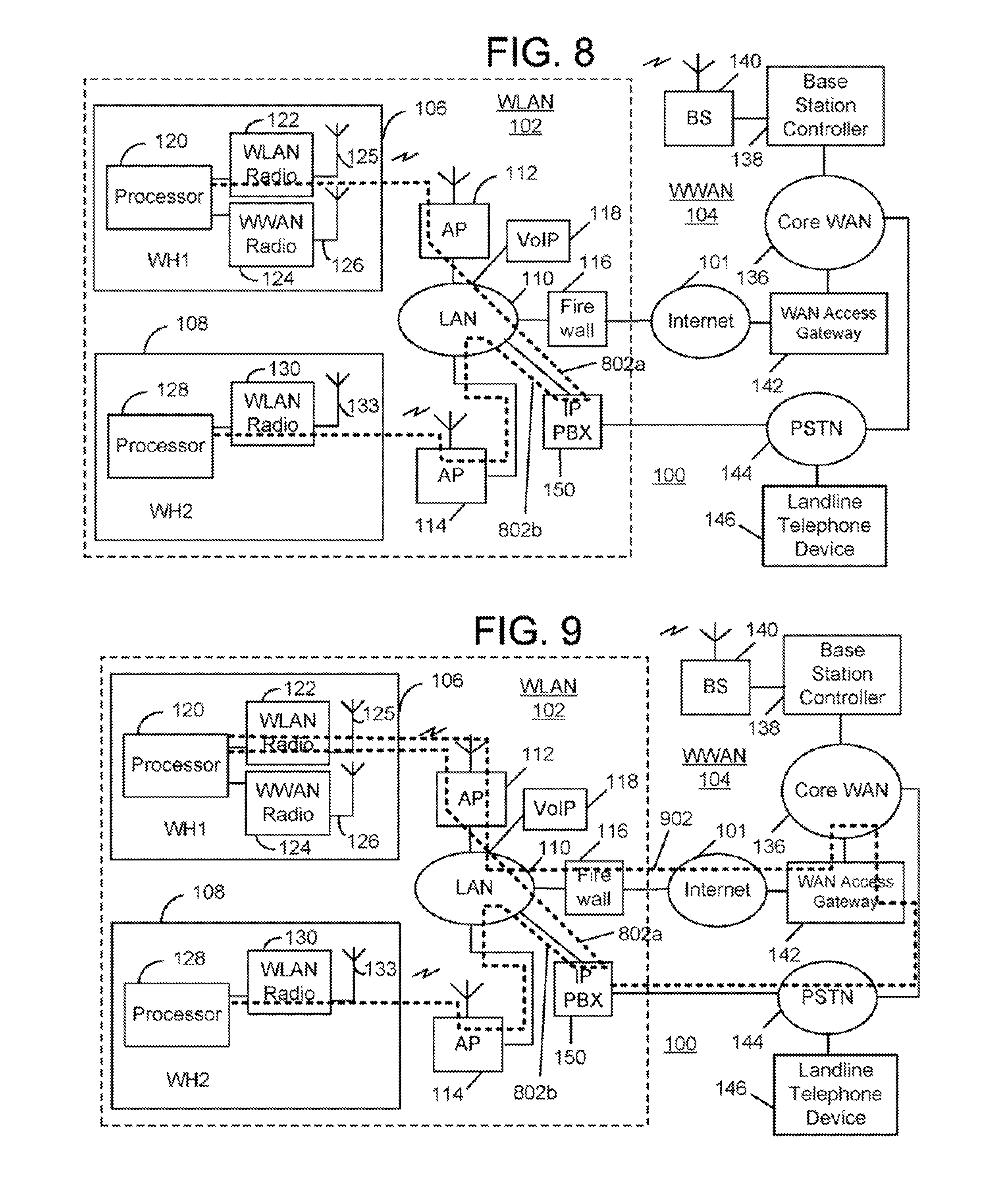 1. A method for use in switching communication operations between a wireless local area network (WLAN) of a LAN and a wireless wide area network (WWAN) of a WAN, the method comprising the acts of:
