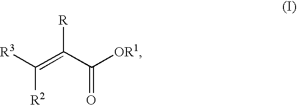 in which R is hydrogen or methyl, R1 is a linear or branched alkyl radical having from 1 to 5 carbon atoms, R2 and R3 are each independently hydrogen or a group of the formula —COOR′ in which R′ is hydrogen or an alkyl group having from 1 to 5 carbon atoms,