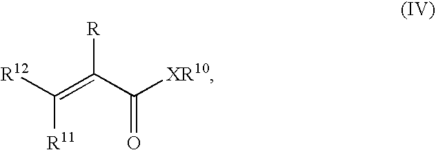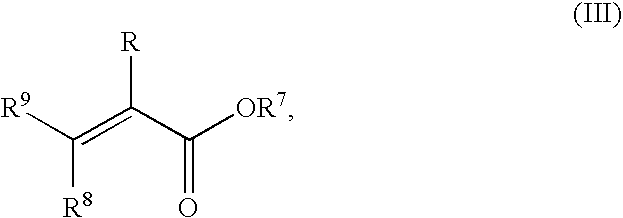 c) from 0 to 80% by weight of at least one ethylenically unsaturated ester compound of the formula (III)