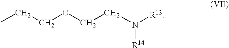 in which A is a connecting group having from 1 to 500 carbon atoms and the R13 and R14 radicals are each independently hydrogen or an alkyl group having from 1 to 40 carbon atoms.