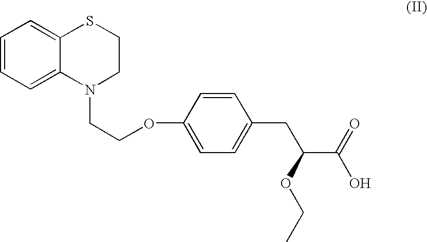 nateglinide (I) 120 mg* or repaglinide 1 mg* + combination partner placebo repaglinide* or nateglinide (I) placebo* + combination partner nateglinide (I) 120 mg* or repaglinide 1 mg* + combination partner repaglinide* or nateglinide (I) placebo* + combination partner placebo *administered before breakfast, lunch, and dinner acarbose about 50 to 600 mg/day about 150 to 300 mg/day AD-5075 about 0.1 to 2500 mg/day about 1 to 1000 mg/day AY-31637 about 0.5 to 200 mg/kg body 2.5 to 100 mg/kg body weight of the patient per day weight of the patient per day ciglitazone about 0.25 to 200 mg/kg about 0.5 to 50 mg/kg body body weight of the patient weight of the patient per day per day darglitazone about 0.05 to 50 mg/kg body about 0.05 to 5 mg/kg body weight of the patient per day weight of the patient per day DN-108 about 0.25 to 200 mg/kg about 5 to 100 mg/kg body body weight of the patient weight of the patient per day per day englitazone about 0.05 to 50 mg/kg body about 0.05 to 5 mg/kg body weight weight glibenclamide about 0.1 to 25 mg/day about 1.75 to 10.5 mg/day glibomuride about 5 to 150 mg/day about 12.5 to 75 mg/day gliclazide about 20 to 480 mg/day about 80 to 240 mg/day glimepiride about 0.25 to 12 mg/day about 1 to 6 mg/day gliquidone about 5 to 250 mg/day about 30 to 120 mg/day glisoxepid about 0.5 to 25 mg/day about 2 to 16 mg/day incretin hormone like GLP-1 about 20 to about 100 μg per day KRP297 about 0.1 to 2500 mg/day about 1 to 1000 mg/day MCC555 about 0.1 to 2000 mg/day about 0.5 to 100 mg/day metformin about 250 to 1500 mg/day about 500 to 1250, e.g. 1000, mg/day miglitol about 50 to 500 mg/day about 100 to 300 mg/day pioglitazone about 0.1 to 1000 mg/day about 10 to 150, for example 15, 30, 45 or 90, mg/day rosiglitazone about 0.1 to 500 mg/day about 1 to 20, for example 1, 2, 4 or 8, mg/day T-174 about 0.1 to 2500 mg/day about 1 to 1000 mg/day tolbutamide about 250 to 3000 mg/day about 1000 to 2000 mg/day troglitazone about 0.1 to 2000 mg/day about 50 to 1000 for example 100, 200, 400, 600 or 800, mg/day, mg/day 5-[3-(4-chlorophenyl])-2- about 0.1 to 2500 mg/day about 1 to 1000 mg/day propynyl]-5-phenylsulfonyl)- thiazolidine-2,4-dione 5-[3-(4-chlorophenyl])-2- about 0.1 to 2500 mg/day about 1 to 1000 mg/day propynyl]-5-(4-fluoro- phenylsulfonyl)thiazolidine- 2,4-dione EXAMPLE 1