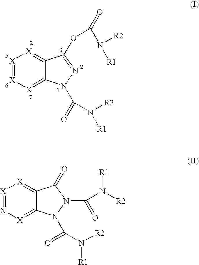 4,6-Difluoro-1-(4-methylpiperidine-1-carbonyl)-1H-indazol-3-yl 4-methylpiperidine-1-carboxylate and 4,6-difluoro-1,2-bis(4-methylpiperidine-1-carbonyl)-1,2-dihydro-indazol-3-one