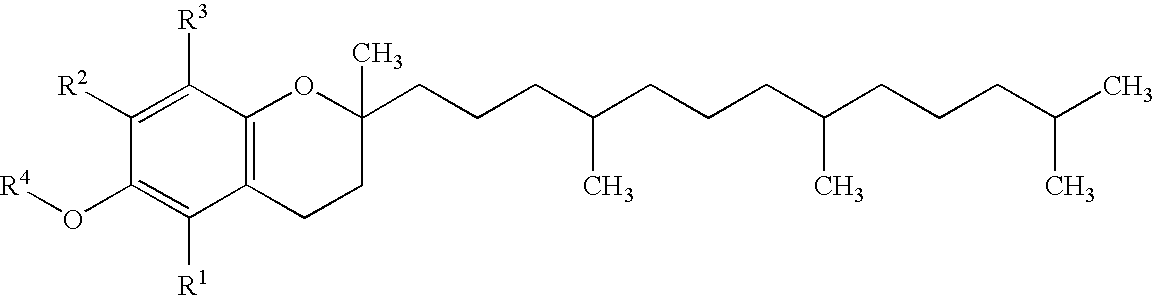 Preference is given to alpha-tocopherol where R1=R2=R3=methyl, especially racemic alpha-tocopherol. R4 is more preferably hydrogen or acetyl. RRR-alpha-Tocopherol is preferred in particular.