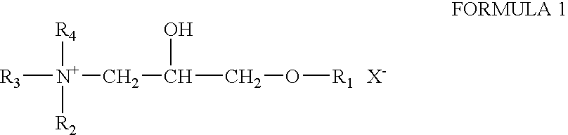 This application is a Continuation-in-Part of U.S. patent application Ser. No. 11/485,780 which was filed on Jul. 13, 2006, and which is fully incorporated herein by reference. 1. Field of the Invention This invention relates to quaternary ammonium compounds. More particularly, this invention relates to sterically hindered quaternary ammonium compounds used as hydrate inhibitors in the oilfield industry. 2. Background Art In the oilfield drilling industry a problem is often encountered with formation of hydrocarbon hydrates. A number of hydrocarbons, especially lower-boiling light hydrocarbons such as methane that are frequently included in formation fluids and natural gas deposits, tend to form hydrates in conjunction with water. Even non-hydrocarbons, such as carbon dioxide, nitrogen and hydrogen sulfide, may form hydrates under certain conditions. Hydrates of all kinds are encouraged by combinations of lower temperatures and higher pressures, such as are encountered in subsea projects. The hydrates thus formed usually exist as solids that are highly insoluble in the formation fluids and natural gases in which they are found. Because of this insolubility, the hydrocarbon hydrates create problems during production and transport of the fluids, because they may cause clogging of flowlines, pipelines, other types of transfer lines and conduits, and of valves and safety devices. Such clogging may result in shutdowns, losses of production, risks of explosion, and unintended releases of hydrocarbons into the environment. A number of methods for inhibiting formation of these hydrocarbon hydrates have been developed. One known to be relatively effective involves the addition of quaternary ammonium compounds. The quaternary ammonium compounds are hypothesized to kinetically inhibit formation of the clathrate cage or lattice structure of the hydrate. This may occur when the nitrogen atom of the quaternary ammonium compound replaces an oxygen atom in the “host” water molecule, followed by replacement of other hydrocarbon “guest” molecules by the quaternary ammonium compound's substituent groups. Once these replacements have occurred, the further growth and agglomeration of the cage or lattice structures are effectively prevented or discouraged. Unfortunately, not all quaternary ammonium compounds are equally effective at such inhibition, since a number of factors may determine the speed and relative number of replacements accomplished. Furthermore, quaternary ammonium compounds in general tend to be relatively expensive to produce, and many methods for producing them suffer from relatively low yields. In view of the above, it would be desirable in the art to find quaternary ammonium compounds that are effective at inhibiting hydrate formation, particularly for oilfield purposes, and that are relatively less expensive to produce or use. Accordingly, it has been found that certain specifically sterically hindered quaternary ammonium compounds can be produced by a method comprising contacting a halohydrin and a sterically hindered tertiary amine in a solvent having hydroxyl functionality, under reaction conditions such that a sterically hindered quaternary ammonium compound is produced. These compounds have been found to be useful in applications for treating fluid passing through oil and natural gas exploration and or production equipment to eliminate or mitigate the formation of hydrates. A method of employing these compounds includes detecting a reduction of flow rate for fluid passing through a wellbore, flowline, pipeline, transfer line, or tubing; determining whether temperature and/or pressure within the wellbore, flowline, pipeline, transfer line, or tubing are sufficient for hydrate formation; and if the temperature and/or pressure within the wellbore, flowline, pipeline, transfer line, or tubing are sufficient for hydrate formation, then contacting the fluid within the wellbore, flowline, pipeline, transfer line, or tubing. The invention also includes, in one aspect, a method of inhibiting hydrate formation in a fluid, comprising contacting a halohydrin and a sterically hindered tertiary amine and a solvent having hydroxyl functionality, under reaction conditions such that a sterically hindered quaternary ammonium compound is produced, and contacting the sterically hindered quaternary ammonium compound and a fluid comprising water and a compound selected from the group consisting of a hydrocarbon, carbon dioxide, nitrogen, hydrogen sulfide, and mixtures thereof, such that the formation of hydrates in the fluid is inhibited in comparison with a similar fluid without the sterically hindered quaternary ammonium compound. The present invention also includes a sterically hindered quaternary ammonium composition conforming to the general formula wherein R1 has 12 or 14 carbon atoms; wherein R2, R3 and R4 are each independently butyl or isobutyl moieties, may be linear or branched, and may have one or more carbon-to-carbon double bonds; and wherein X is a halogen selected from the group consisting of chlorine, fluorine, bromine and iodine. The present invention also includes a method of inhibiting hydrate formation comprising contacting a fluid comprising water and a compound selected from the group consisting of a hydrocarbon, carbon dioxide, nitrogen, hydrogen sulfide, and mixtures thereof, with a sterically hindered quaternary ammonium composition conforming to the general formula wherein R1 has from 1 to 20 carbon atoms; wherein R2, R3 and R4 each independently has from 3 to 6 carbon atoms, may be linear or branched, and may have one or more carbon-to-carbon double bonds; and wherein X is a halogen selected from the group consisting of chlorine, fluorine, bromine and iodine; under reaction conditions such that the formation of hydrates in the fluid is inhibited in comparison with a similar fluid without the sterically hindered quaternary ammonium compound. The present invention further