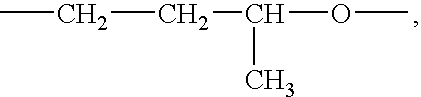 R and R′ are as defined in EO is —CH2—CH2—O—, PO is BO is n is an integer from 2 to 20, p, q, r and s independently are integers from 1 to 10, t is an integer from 8 to 13, and u is an integer from 6 to 17. 7. The composition according to in which the numbers 8 and 6 are average values,
