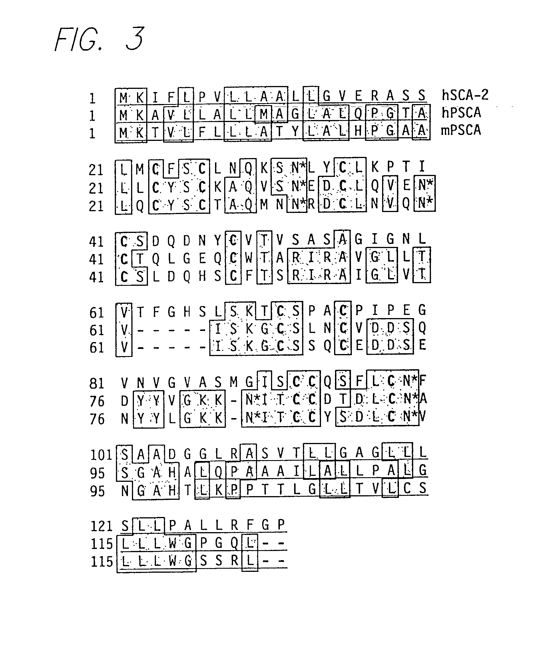 To determine whether the anti-PSCA mAbs sensitize tumor cells to ADMMC, the following assay is performed. Peritoneal macrophages are activated by intraperitoneal injection of SCID mice with Brewer's thioglycollate medium as described by Larson et al., 1988, Int. J. Cancer 42: 877-882. After four days, cells are collected by intraperitoneal lavage, and the percent of activated macrophages determined by Mac-1 staining. For the assay, the activated macrophages are co-cultured with3H-thymidine labeled LAPC-9, LNCaP-PSCA, and LNCaP target cells for 48 hours in the presence of either anti-PSCA mAbs or control mouse IgG. At the end of the assay, supernatants are harvested from the wells and killing is determined by the amount of3H-thymidine released as described above for51Cr release. 19-C: Complement-mediated Tumor Cell Lysis Assay Destruction of tumor targets by complement-dependent lysis may be performed according to the method described by Huang et al., 1995, Cancer Res. 55: 610-616. For example, LAPC-9, LNCaP-PSCA, and LNCaP cells are labeled with51Cr and then incubated on ice for 30′ with either anti-PSCA mAbs or a mouse IgG control. After washing to remove unbound antibody, the cells are incubated with rabbit complement at 37° C. for 2 hr, and cell lysis measured by51Cr-release into the supernatant. The percent cell lysis will be determined as described above. 19-D: Cell Proliferation Assay The effect of anti-PSCA mAbs on cell proliferation may be determined by an MTT assay. Briefly, LNCaP-PSCA or LNCAP cells are cultured for 72 hr with varying amounts of either anti-PSCA mAbs or mouse IgG as a control. At the end of the incubation period, the cells are washed and incubated in a solution of MTT for 4 hr. Proliferation is indicated by dehydrogenase mediated conversion of the MTT solution to a purple color and measured at a wavelength of 570 nm. 19-E: Assay for Colony Formation in Soft Agar Colony formation in the presence of anti-PSCA mAbs may be measured by growth of cells in soft agar. Briefly, 1×104 LNCaP-PSCA or LNCaP cells are plated in medium containing Nobel agar. A dilution series of anti-PSCA mAbs is then added to plates in duplicate to determine the effect on colony growth. Mouse IgG is used as a control. Macroscopic colonies are counted after 14-21 days in culture. PSCA Capture ELISA A PSCA capture ELISA was developed in order to measure PSCA levels in serum prior to treatment with anti-PSCA mAbs and provides information useful in determining the therapeutic dosage regimen. The assay may also be useful in monitoring patient response to the therapy. A schematic representation of the assay format is shown in A schetnatic representation of the standardization and control antigens are shown in Quantification of recombinant PSCA secreted from 293T cells engineered to express and secrete PSCA is shown in Sequence of PSCA mAb Genes The nucleotide sequences of the genes encoding the heavy chain variable regions of murine monoclonal antibodies 1G8, 4A10 and 2H9 were determined using the methods described in Coloma et al., 1992, J Immunol. Methods 153: 89-104. Primers for heavy chain variable region sequencing of mAbs 1G8 and 4A10 were as follows:,