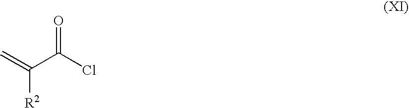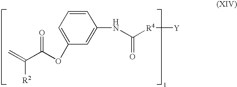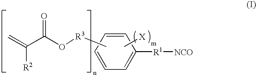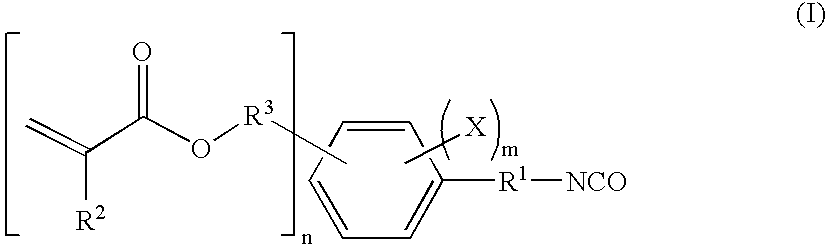 n is 2. [40] The urethane compound containing a (meth)acryloyl group as described in [39], wherein the aliphatic dihydric alcohol residue in which the alkylene group is trimethylene group is selected from 2-methyl-1,3-propanediol, 1,3-butanediol, 2,4-heptanediol, 2,2-diethyl-1,3-propanediol, 2-methyl-2-propyl-1,3-propanediol, 2-ethyl-1,3-hexanediol, 2-methyl-2,4-pentanediol, 2,2,4-trimethyl-1,3-pentanediol and 2-butyl-2-ethyl-1,3-propanediol residues; the aliphatic dihydric alcohol residue in which the alkylene group is tetramethylene group is 1,4-butanediol residue; the aliphatic dihydric alcohol residues in which the alkylene group is pentamethylene group is selected from 1,5-pentanediol, 3-methyl-1,5-pentanediol and 1,5-hexanediol residues; the aliphatic dihydric alcohol residues in which the alkylene group is hexamethylene group is selected from 1,6-hexanediol and 2-ethyl-1,6-hexanediol residues; the aliphatic dihydric alcohol residues in which the alkylene group is heptamethylene group is 1,7-heptanediol residue; the aliphatic dihydric alcohol residues in which the alkylene group is octamethylene group is selected from 1,8-octanediol and 2-methyl-1,8-octanediol residues. [41] A process for producing a reactive (meth)acrylate polymer, comprising reacting the aromatic isocyanate compound containing a (meth)acryloyl group of Formula (I) of [1], with the urethane compound containing a (meth)acryloyl group of [39]. [42] A process for producing a reactive (meth)acrylate polymer, comprising reacting the aromatic isocyanate compound containing a (meth)acryloyl group of Formula (I) of [1], with a polymer compound that includes repeating units containing a functional group with active hydrogen. [43] The process for producing a reactive (meth)acrylate polymer as described in [42], wherein the polymer compound is a polyhydroxy compound including repeating units. [44] The process for producing a reactive (meth)acrylate polymer as described in [41] or [42], wherein the aromatic isocyanate compound containing a (meth)acryloyl group is represented by Formula (III) of [6] or Formula (IV) of [7]. [45] The process for producing a reactive (meth)acrylate polymer as described in [43], wherein the polyhydroxy compound including repeating units is a polyester polyol compound, a polycarbonate polyol compound, a polyether polyol compound, a polyurethane polyol compound, a hydroxyalkyl (meth)acrylate homopolymer or copolymer, or an epoxy (meth)acrylate compound. [46] The process for producing a reactive (meth)acrylate polymer as described in [43], wherein the polyhydroxy compound including repeating units contains a carboxyl group. [47] A reactive (meth)acrylate polymer produced by reacting the aromatic isocyanate compound containing a (meth)acryloyl group of Formula (I) of [1], with a polymer compound that includes repeating units containing a functional group with active hydrogen. [48] The reactive (meth)acrylate polymer as described in [47], wherein the polymer compound is a polyhydroxy compound including repeating units. [49] The reactive (meth)acrylate polymer as described in [47] or [48], wherein the aromatic isocyanate compound containing a (meth)acryloyl group is represented by Formula (III) of [6]. [50] The reactive (meth)acrylate polymer as described in [47] or [48], wherein the aromatic isocyanate compound containing a (meth)acryloyl group is represented by Formula (IV) of [7]. [51] The reactive (meth)acrylate polymer as described in [48], wherein the polyhydroxy compound including repeating units is a polyester polyol compound, a polycarbonate polyol compound, a polyether polyol compound, a polyurethane polyol compound, a hydroxyalkyl (meth)acrylate homopolymer or copolymer, or an epoxy (meth)acrylate compound. [52] The reactive (meth)acrylate polymer as described in [48], wherein the polyhydroxy compound including repeating units contains a carboxyl group. [53] The reactive (meth)acrylate polymer as described in [48], wherein the polyhydroxy compound is an acrylic copolymer of molecular weight of 5,000 to 50,000, the copolymer including repeating units represented by Formula (XVI) or (XVII): [54] A curable composition comprising the reactive monomer as described in any one of [31] to [37] and a polymerization initiator. [55] A cured product produced by curing the curable composition as described in [54]. [56] The curable composition as described in [54], wherein the polymerization initiator is a photopolymerization initiator. [57] The curable composition as described in [56], further comprising an ethylenically unsaturated monomer. [58] A curable composition comprising: (A) 10 to 40% by mass of the reactive (meth)acrylate polymer as described in any one of [47] to [53]; (B) 25 to 60% by mass of a pigment; (D) 2 to 25% by mass of a photopolymerization initiator; (F) 5 to 20% by mass of an ethylenically unsaturated monomer; and (G) an organic solvent. [59] A curable composition comprising: (A) 10 to 40% by mass of the reactive (meth)acrylate polymer as described in any one of [47] to [53]; (B) 25 to 60% by mass of a pigment; (D) 2 to 20% by mass of a photopolymerization initiator; (F) 5 to 20% by mass of an ethylenically unsaturated monomer; (G) an organic solvent; and (H) 2 to 20% by mass of a polyfunctional thiol. [60] The curable composition as described in any one of [57] to [59], which is used for forming a color filter. [61] The curable composition as described in [58] or [59], wherein the pigment (B) is carbon black. [62] A curable composition comprising: (A) the reactive (meth)acrylate polymer as described in any one of [47] to [53]; (C) a thermosetting polymer; (D) a photopolymerization initiator; and (E) a thermal polymerization catalyst. [63] The curable composition as described in [62], which is used as a solder resist. [64] An insulating protective film produced from the curable composition as described in [62]. [65] A printed wiring board including the insulating protective film as d