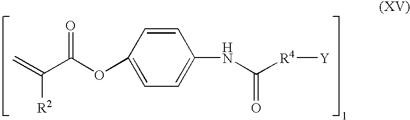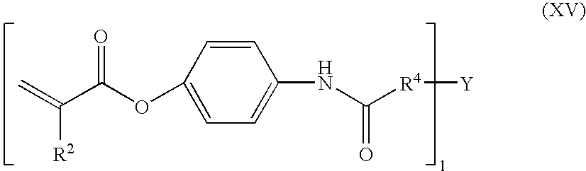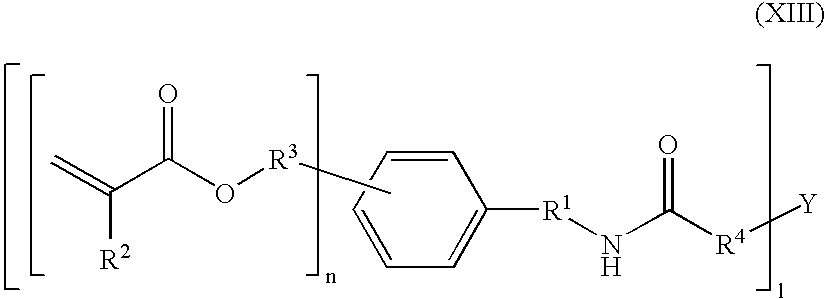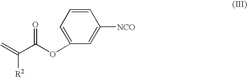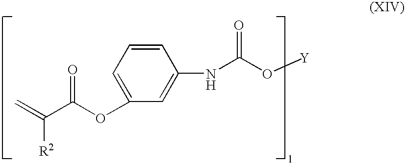 Reactive urethane compound Type Ex.7 Ex.8 Ex.9 Ex.10 Ex.11 Ex.12 Polymerization Reactive urethane compound Reactive monomer initiator (g) (g) (g) Ex. 7 5 5 0.2 Ex. 8 5 5 0.2 Ex. 9 5 5 0.2 Ex. 10 10 — 0.2 Ex. 11 10 — 0.2 Ex. 12 10 — 0.2 Reactive urethane compound Type Comp. Ex. 2 Comp. Ex. 3 Comp. Ex. 4 Comp. Ex. 5 Polymerization Reactive urethane compound Reactive monomer initiator (g) (g) (g) Comp. Ex. 2 5 5 0.2 Comp. Ex. 3 5 5 0.2 Comp. Ex. 4 10 — 0.2 Comp. Ex. 5 10 — 0.2 (2) Evaluation of Curable Composition of Reactive Monomer