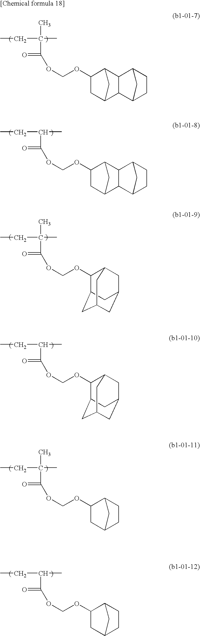said component (B) comprises a resin (B1) which has a structural unit (b1) derived from an acrylate ester, in which a hydrogen atom of a carboxyl group has been substituted with an acid dissociable, dissolution inhibiting group represented by a general formula (I) shown below: