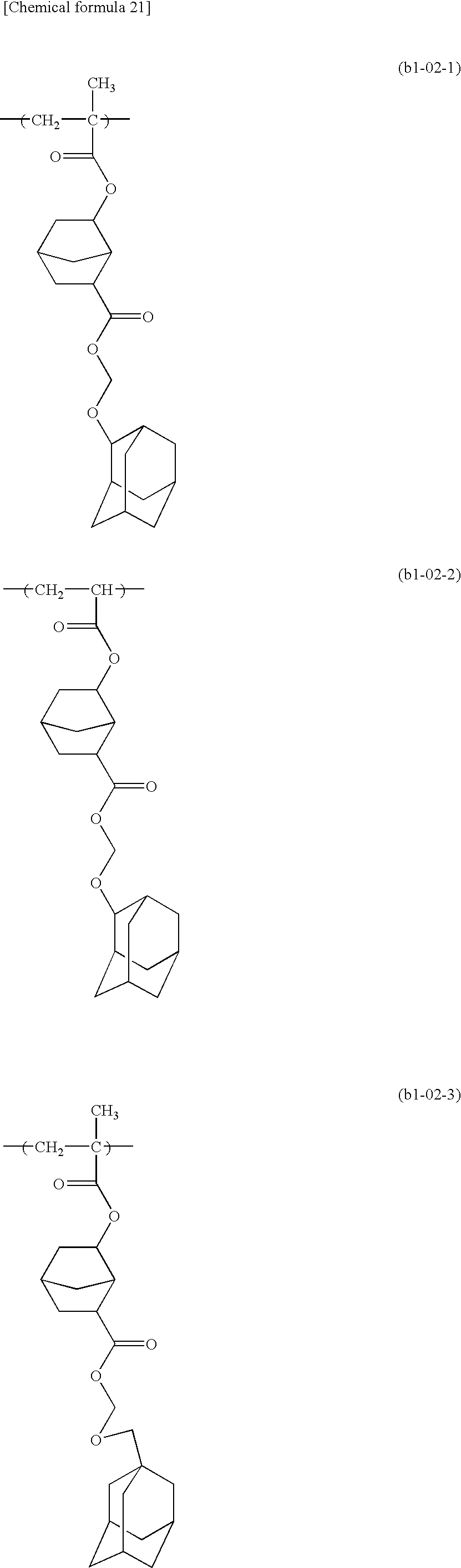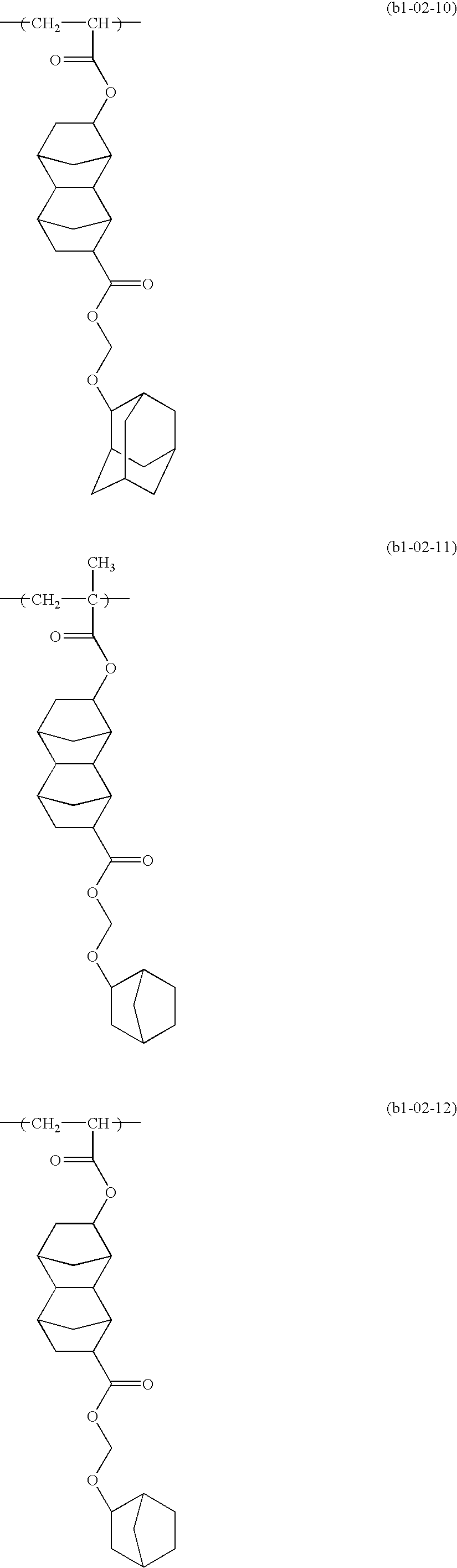 (B-6): the copolymer of 100000 Mw whose structural unit (b3) is changed to 55 mol % of 2-methyl-adamantyl methacrylate unit represented by the general formula (1) below in the (B-5) above.