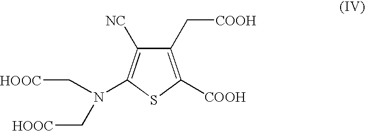 EP 0415850 and related U.S. Pat. No. 5,128,367 (“the '367 patent”) disclose divalent metal salts of 2-[N,N-di(carboxymethyl)amino]-3-cyano4-carboxymethylthiophene-5-carboxylic acid such as strontium ranelate and its tetrahydrate, heptahydrate and octahydrate. The '367 patent further discloses the synthesis of strontium ranelate from the tetraester compound of Formula II: