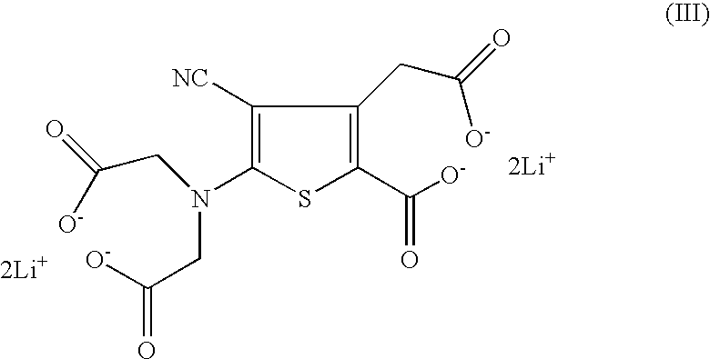 Preparation of distrontium salt of 2-[N-N-di(carboxymethyl-)amino]-3-cyano-4-carboxymethylthiophene-5-carboxylic acid in the form of an octahydrate.