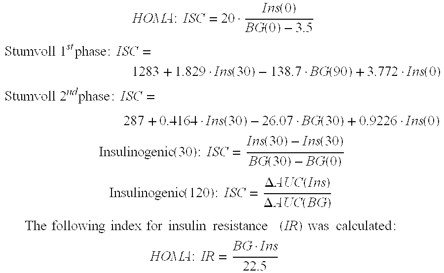 Patient Number 101 Treatment Oral 150 U Insulin/ Oral 300 U Insulin/ SC 12 U 200 mg 4-CNAB 400 mg 4-CNAB Short-acting insulin Placebo Blood Postprandial Blood Postprandial Blood Postprandial Blood Postprandial Time glucose excursion glucose excursion glucose excursion glucose excursion (min) (mg/dl) (mg/dl) (mg/dl) (mg/dl) (mg/dl) (mg/dl) (mg/dl) (mg/dl) −120 NA NA NA −105 NA NA NA −90 NA NA NA −75 NA NA NA −60 134 149 140 −45 135 152 141 −30 130 150 144 −16 124 146 139 −1 127 0 144 0 140 0 5 126 −1 144 0 134 −6 10 123 −4 141 −3 116 −24 15 121 −6 142 −2 138 −2 20 127 0 148 4 136 −4 25 129 2 158 14 145 5 30 139 12 164 20 166 26 35 140 13 169 25 171 31 40 150 23 179 35 183 43 45 153 26 179 35 198 58 50 163 36 184 40 195 55 55 170 43 185 41 209 69 60 178 51 186 42 206 66 65 185 58 193 49 211 71 70 204 77 193 49 222 82 75 215 88 197 53 223 83 80 218 91 213 69 225 85 85 221 94 210 66 224 84 90 225 98 210 66 222 82 95 225 98 204 60 229 89 100 231 104 211 67 231 91 105 231 104 209 65 214 74 110 229 102 199 55 231 91 115 226 99 202 58 223 83 120 215 88 208 64 204 64 130 207 80 201 57 202 62 140 211 84 182 38 192 52 150 208 81 173 29 175 35 160 188 61 164 20 177 37 170 176 49 153 9 165 25 180 169 42 141 −3 169 29 190 157 30 126 −18 154 14 200 148 21 130 −14 162 22 210 142 15 117 −27 155 15 220 141 14 116 −28 160 20 230 141 14 114 −30 159 19 240 134 7 105 −39 155 15 255 132 5 101 −43 135 −5 270 131 4 95 −49 131 −9 285 117 −10 91.7 −52.3 128 −12 300 118 −9 86.1 −57.9 123 −17 315 105 −22 83.6 −60.4 114 −26 330 105 −22 83 −61 118 −22 345 101 −26 78.3 −65.7 113 −27 360 99.9 −27.1 83.8 −60.2 110 −30 Patient Number 102 Treatment Oral 150 U Insulin/ Oral 300 U Insulin/ SC 12 U 200 mg 4-CNAB 400 mg 4-CNAB Short-acting insulin Placebo Blood Postprandial Blood Postprandial Blood Postprandial Blood Postprandial Time glucose excursion glucose excursion glucose excursion glucose excursion (min) (mg/dl) (mg/dl) (mg/dl) (mg/dl) (mg/dl) (mg/dl) (mg/dl) (mg/dl) −120 NA NA NA −105 NA NA NA −90 NA NA NA −75 NA NA NA −60 135 149 164 −45 147 157 181 −30 139 161 169 −16 144 164 177 −1 146 0 151 0 172 0 5 157 11 157 6 177 5 10 154 8 155 4 178 6 15 152 6 158 7 180 8 20 154 8 167 16 167 −5 25 159 13 164 13 174 2 30 175 29 160 9 184 12 35 182 36 179 28 184 12 40 191 45 184 33 199 27 45 206 60 167 16 208 36 50 202 56 177 26 217 45 55 209 63 175 24 223 51 60 217 71 168 17 234 62 65 239 93 188 37 252 80 70 247 101 188 37 239 67 75 241 95 194 43 260 88 80 246 100 194 43 279 107 85 249 103 213 62 271 99 90 255 109 196 45 255 83 95 253 107 211 60 275 103 100 261 115 197 46 256 84 105 258 112 214 63 279 107 110 276 130 209 58 264 92 115 270 124 201 50 270 98 120 275 129 198 47 270 98 130 265 119 199 48 281 109 140 266 120 190 39 295 123 150 271 125 186 35 254 82 160 252 106 194 43 275 103 170 254 108 188 37 259 87 180 249 103 184 33 251 79 190 243 97 172 21 252 80 200 247 101 171 20 247 75 210 243 97 180 29 248 76 220 244 98 170 19 227 55 230 245 99 170 19 231 59 240 233 87 163 12 226 54 255 225 79 162 11 222 50 270 218 72 153 2 223 51 285 219 73 158 7 212 40 300 213 67 147 −4 212 40 315 210 64 129 −22 205 33 330 210 64 145 −6 196 24 345 204 58 105 −46 199 27 360 199 53 130 −21 204 32 Patient Number 103 Treatment Oral 150 U Insulin/ Oral 300 U Insulin/ SC 12 U 200 mg 4-CNAB 400 mg 4-CNAB Short-acting insulin Placebo Blood Postprandial Blood Postprandial Blood Postprandial Blood Postprandial Time glucose excursion glucose excursion glucose excursion glucose excursion (min) (mg/dl) (mg/dl) (mg/dl) (mg/dl) (mg/dl) (mg/dl) (mg/dl) (mg/dl) −120 NA NA NA NA −105 NA NA NA NA −90 NA NA NA NA −75 NA NA NA NA −60 162 172 177 170 −45 144 177 175 167 −30 146 174 179 165 −16 139 162 166 164 −1 137 0 169 0 162 0 160 0 5 135 −2 167 −2 166 4 159 −1 10 135 −2 165 −4 159 −3 159 −1 15 137 0 161 −8 164 2 160 0 20 150 13 166 −3 159 −3 167 7 25 161 24 170 1 175 13 174 14 30 180 43 168 −1 179 17 188 28 35 172 35 186 17 184 22 188 28 40 187 50 198 29 188 26 202 42 45 190 53 203 34 190 28 201 41 50 216 79 203 34 194 32 209 49 55 207 70 214 45 199 37 215 55 60 218 81 219 50 200 38 214 54 65 223 86 224 55 201 39 203 43 70 222 85 228 59 209 47 225 65 75 216 79 205 36 205 43 226 66 80 229 92 229 60 204 42 214 54 85 228 91 233 64 196 34 217 57 90 226 89 250 81 193 31 214 54 95 238 101 246 77 190 28 219 59 100 227 90 244 75 189 27 209 49 105 235 98 248 79 186 24 217 57 110 233 96 231 62 179 17 216 56 115 220 83 249 80 172 10 222 62 120 225 88 254 85 172 10 214 54 130 204 67 245 76 157 −5 217 57 140 215 78 249 80 156 −6 216 56 150 215 78 246 77 146 −16 199 39 160 222 85 248 79 151 −11 194 34 170 220 83 257 88 147 −15 200 40 180 212 75 250 81 144 −18 199 39 190 204 67 248 79 144 −18 192 32 200 193 56 235 66 145 −17 188 28 210 168 31 240 71 129 −33 187 27 220 188 51 205 36 127 −35 188 28 230 189 52 222 53 116 −46 181 21 240 178 41 217 48 112 −50 185 25 255 189 52 204 35 112 −50 175 15 270 151 14 192 23 108 −54 163 3 285 142 5 181 12 106 −56 157 −3 300 135 −2 178 9 101 −61 155 −5 315 135 −2 170 1 101 −61 148 −12 330 122 −15 161 −8 99.8 −62.2 140 −20 345 111 −26 164 −5 96.6 −65.4 136 −24 360 104 −33 157 −12 92.8 −69.2 136 −24 Patient Number 104 Treatment Oral 150 U Insulin/ Oral 300 U Insulin/ SC 12 U 200 mg 4-CNAB 400 mg 4-CNAB Short-acting insulin Placebo Blood Postprandial Blood Postprandial Blood Postprandial Blood Postprandial Time glucose excursion glucose excursion glucose excursion glucose excursion (min) (mg/dl) (mg/dl) (mg/dl) (mg/dl) (mg/dl) (mg/dl) (mg/dl) (mg/dl) −120 NA NA NA NA −105 NA NA NA NA −90 NA NA NA NA −75 NA NA NA NA −60 164 166 149 184 −45 164 137 135 180 −30 165 177 139 178 −16 163 135 168 185 −1 164 0 157 0 173 0 183 0 5 161 −3 154 −3 182 9 172 −11 10 161 −3 151 −6 178 5 173 −10 15