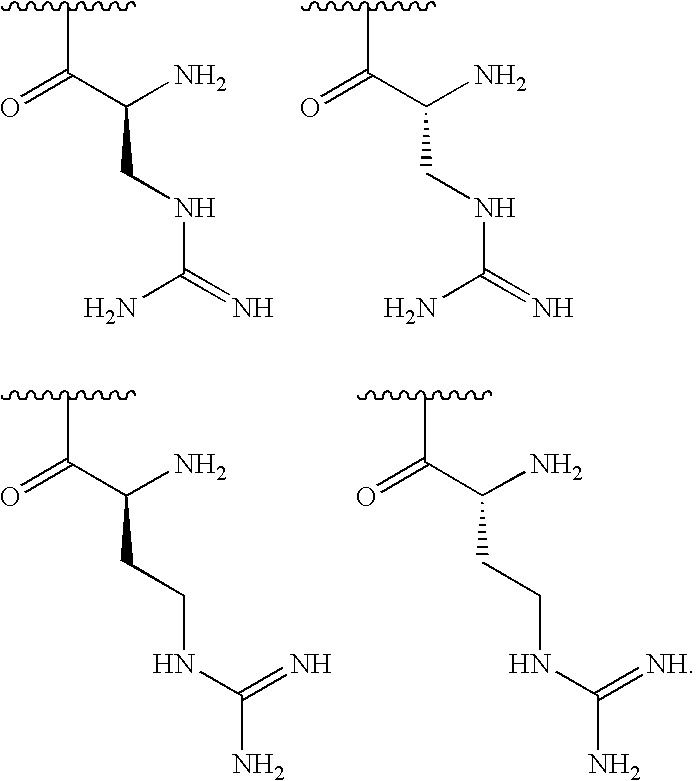 Chitosan-arginine and Bacitracin synergy against C/A (log Bacitracin (log Log Treatment Total logs reduction reduction Total log reduction Assay (μg/mL) recoverable alone) alone) reduction beyond C/A 1* C/A 16 8.6 4.6 0.08 5.9 1.3 BAC 8 C/A 8 8.6 4.4 0.08 5.6 1.2 BAC 8 C/A 8 8.6 4.4 0.08 5.5 1.0 BAC 4 2* C/A 16 7.1 3.3 0 5.4 2.1 BAC 4 C/A 8 7.1 3.2 0 5.4 2.1 BAC 4 C/A 16 7.1 3.3 0.2 5.1 1.9 BAC 2 C/A 8 7.1 3.2 0.2 5.0 1.7 BAC 2 *C/A 25% Functionalization, 43 kDa, 2.28 PDI, 88% DDA Example 6