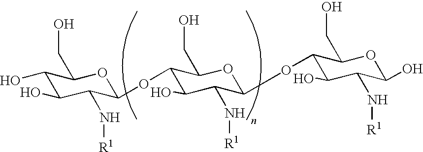 Chitosan-arginine and Bacitracin synergy against C/A (log Bacitracin (log Log Treatment Total logs reduction reduction Total log reduction Assay (μg/mL) recoverable alone) alone) reduction beyond C/A 1* C/A 4 6.6 3.3 0 5.2 1.9 BAC 32 2* C/A 8 6.9 4.4 0.2 6.9 2.5 BAC 32 *C/A 25% Functionalization, 43 kDa, 2.28 PDI, 88% DDA Example 7