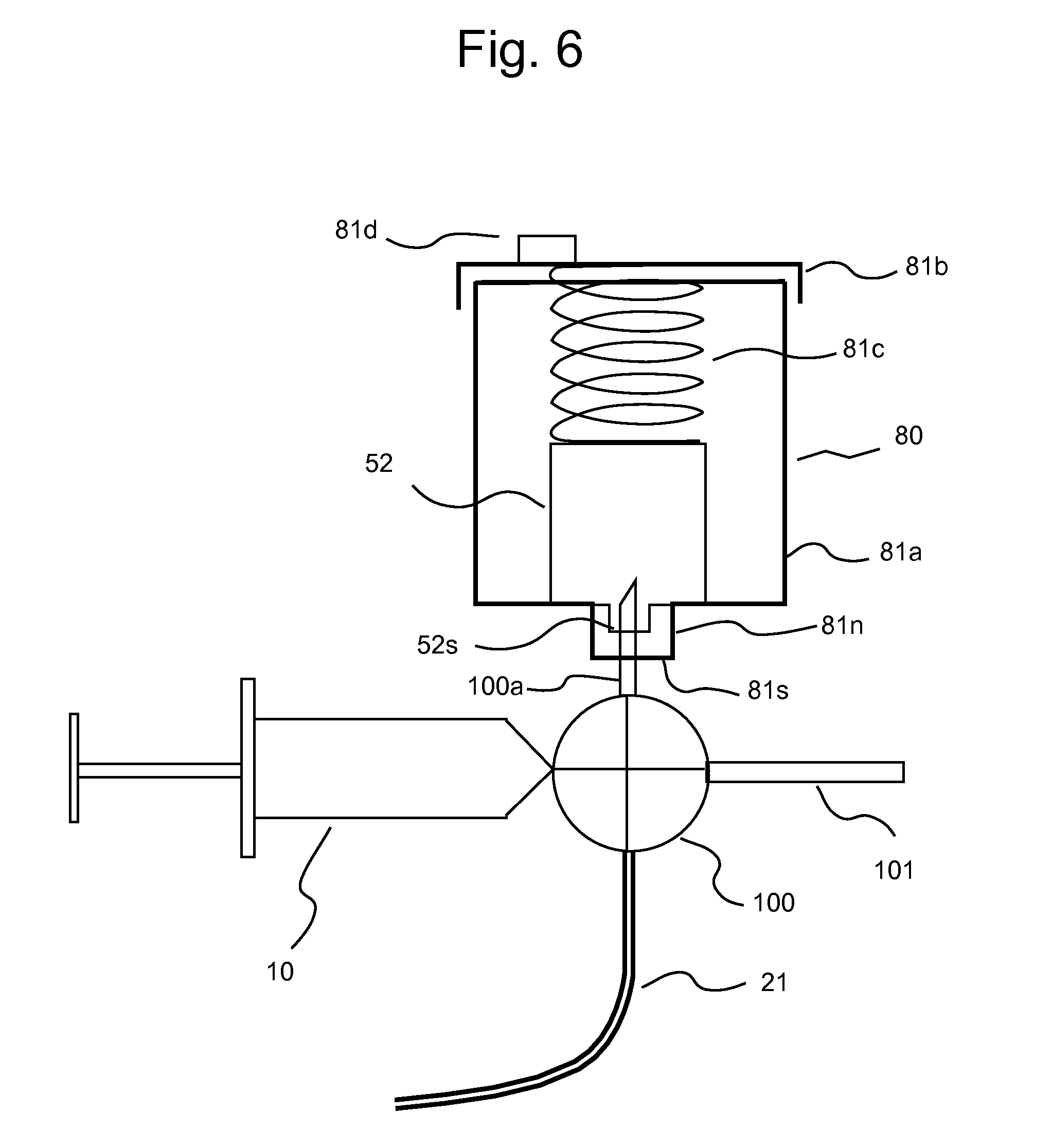 1. Store frozen vials in the pharmacy. a. Store frozen vials in the pharmacy 2. In a pharmacy hood, using gloves and proper b. Transport the drug bottle to the suite, install in technique, thaw the bottle with the gene therapy the biohazard enclosure and thaw. (Or, install in drug in the hand, avoiding agitation. biohazard enclosure in pharmacy and transport therein.) 3. Using a needle, pull a few ml of drug into a 10 ml syringe. 4. Add a few ml of saline to dilute it. 5. Place the 10 ml syringe in a 20 ml syringe holder for transport to the interventional suite to preserve the sterility of the outside of the syringe. (Thawed drug has to be used in several hours.) 6. Operating personnel put on and wear goggles and masks with M-95 filters to protect against infection from airborne virus. 7. All the fluid lines are purged of air. The c. Purge air from all fluid lines, ensuring that any operators can dilute the drug further if there are biohazard material is delivered into the waste more than 4 coronary arteries to inject. container 55. Connect the patient ECG to the control unit 69a. 8. The catheter is positioned in the desired vessel d. The catheter is positioned in the desired vessel using normal angiographic equipment and using normal angiographic equipment (manifolds, technique. Deep subselective placement can be catheters, guidewires) and technique. used avoid any reflux of contrast or drug into Deep subselective placement is not needed. the aorta. 9. The placement is verified with a contrast e. The placement is verified with a contrast injection. injection. 10. The manifold and/or catheter are optionally f. The operator programs the pumps to deliver the flushed with saline by removing the contrast proper amount with the proper timing. syringe and attaching the saline syringe. 11. The saline syringe is disconnected, the gene therapy syringe is connected and 1 to 5 milliliters is injected by hand over 1 to 2 minutes. 12. The gene therapy syringe is disconnected and the saline syringe is connected to inject a few ml of saline over the same time period to flush the gene therapy drug out of the fluid path and into the patient. 13. The saline syringe is disconnected and the g. The drug and flush fluids are delivered as contrast syringe is reconnected to inject programmed. contrast to confirm that the catheter had not moved. 14. The catheter is then repositioned for the next h. The catheter is then repositioned for the next injections and steps 8-12 are repeated until all injections and steps d-g are repeated until all vessels are injected vessels are injected 15. The disposable parts of the system are disposed i. The disposable parts of the system are disposed of as biohazard material. of as biohazard material.