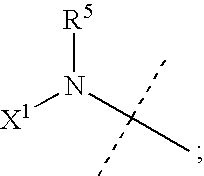 X1 is selected from —OR11, —NR11R12, and —S(O)2R11; when X1 is —OR11, said —OR11 and R5 optionally taken together with the nitrogen atom to which they are attached form a 4-7 membered saturated or unsaturated ring having 0-2 additional heteroatoms selected from O, S and N, wherein said ring is optionally substituted with one or more groups selected from halo, CN, CF3, —OCF3, —NO2, oxo, —Si(C1-C6 alkyl), —(CR19R20)nC(═Y′)R16, —(CR19R20)n C(═Y′)OR16, —(CR19R20)nC(═Y′)NR16R17, —(CR19R20)nNR16R17, —(CR19R20)nOR16, —(CR19R20)n—SR16, —(CR19R20)n NR16C(═Y′)R17, —(CR19R20)n NR16C(═Y′)OR17, —(CR19R20)n NR18C(═Y′)NR16R17, —(CR19R20)nNR17SO2R16, —(CR19R20)nOC(═Y′)R16, —(CR19R20)nOC(═Y′)OR16, —(CR19R20)nOC(═Y′)NR16R17, —(CR19R20)nOS(O)2(OR16), —(CR19R20)nOP(═Y′)(OR16)(OR17), —(CR19R20)nOP(OR16)(OR17), —(CR19R20)nS(O)R16, —(CR19R20)nS(O)2R16, —(CR19R20)nS(O)2NR16R17, —(CR19R20)nS(O)(OR16), —(CR19R20)n S(O)2(OR16), —(CR19R20)n SC(═Y′)R16, —(CR19R20)n SC(═Y′)OR16, —(CR19R20)n SC(═Y′)NR16R17, and R21;