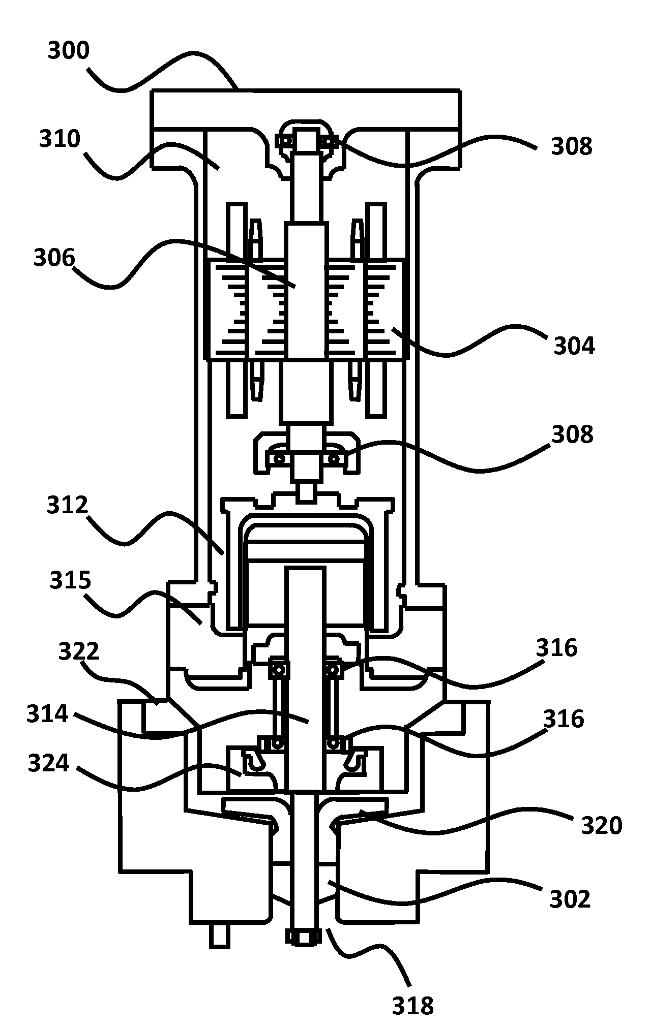 This application claims priority from provisional patent application Ser. No. 61/273,377, filed Aug. 3, 2009, which is hereby incorporated herein by reference in its entirety to be considered part of this specification. An inducer comprising at least two sets of rotating and non-rotating helical inducer vanes. As the fluid enters the inducer, the fluid moves up through a first set of rotating vanes, and gains rotational momentum. The fluid then enters a second set of non-rotating vanes that use the rotational momentum of the fluid to progress the fluid forward while removing the rotation, which consequently decreases the net positive suction head required. The inducer is positioned at the inlet of a cryogenic centrifugal pump. Embodiments of the cryogenic centrifugal pump use a vertical rotational axis and include a thrust equalizing mechanism device to balance hydraulic thrust. Not applicable. Not applicable. A common problem with spiral inducers used within centrifugal pumps and similar devices is that the fluid in the tank in which the centrifugal pump is installed will begin to rotate in the same direction as, and along with, the inducer blades. When this occurs, the fluid does not move up through the inducer as efficiently. This phenomenon can also result in a change in pressure near the inlet of the inducer and increase the amount of net positive suction head (NPSH) required to make the pump continue to work efficiently or properly. When the pressure of a liquid, such as a cryogenic fluid, falls below the vapor pressure, vapor bubbles will form in the fluid. As this liquid-vapor fluid combination is pumped through a machine, such as an inducer, impeller or pump, the fluid pressure increases. If the fluid pressure increases above the vapor pressure, the vapor bubbles in the fluid will collapse, which is called “cavitation.” It is desirable to prevent cavitation in devices because the collapsing bubbles can generate shock waves that are strong enough to damage moving parts around them. In addition, cavitation causes noise, vibration, and erosion of material from the device. Thus, the service life of a pump can be shortened due to cavitation. However, it is desirable, when pumping cryogenic fluid from a tank to get the fluid pressure as close to the vapor pressure as possible, in order to pump more fluid from the tank. In other words, it is desirable for the net positive suction head available (NPSHA) in the tank to be greater than the net positive suction head required (NPSHR) of the pump. NPSHA is a function of the system in which the pump operates, such as the pressure of the fluid within a containment vessel, such as a tank, before it enters the inducer at the inlet of the pump, and the liquid depth of the vessel or tank housing the pump, among other factors. Inducers are used in cryogenic systems, including storage tanks, rocket fuel pump feed systems, and other similar uses. Inducers are used in such systems to prevent the fluid being moved from cavitating in the impeller or pump, which can occur when there is not enough pressure to keep the liquid from vaporizing. Non-cavitating inducers are used to pressurize the flow of the fluid sufficient to enable the devices to which the inducer is attached to operate efficiently. An excellent discussion of the fluid dynamic properties of inducers is provided by B. Lakshminarayana, The techniques used to improve pump performance relative to the operation of inducers vary significantly. For example, Nguyen Duc et al., U.S. Pat. No. 6,220,816, issued Apr. 24, 2001, describes a device for transferring fluid between two different stages of a centrifugal pump through use of a stator assembly that slows down fluid leaving one impeller before entering a second impeller. A different technique is used in Morrison et al., U.S. Pat. No. 6,116,338, issued Sep. 12, 2000, which discloses a design for an inducer that is used to push highly viscous fluids into a centrifugal pump. In Morrison et al., an attempt is made to resolve the problem of fluids rotating with the inducer blades by creating a very tight clearance between the blades of the auger of the inducer and the inducer housing, and configuring the auger blades in such a way as to increase pressure as fluid moves through the device to the pump. While grooves have been used in inducer designs in the past, they have not been used to help efficiently move the fluid through the inducer. For example, in Knopfel et al., U.S. Pat. No. 4,019,829, issued Apr. 26, 1977, an inducer is illustrated that has a circumferential groove around a hub at the front of the inducer. This design causes turbulence to develop within the grooves of the inducer hub rather than in the fluid outside of the grooves, thereby reducing the tendency of the fluid to pulsate and generate noise. Grooves are also illustrated and described in Okamura et al., Okamura et al. acknowledge, however, that increasing the specific speed of mixed-flow pumps has a tendency to make their performance curves unstable and to cause a big hump at low capacities, thus it is stated that it is doubtful that the illustrated technique would be effective for higher specific-speed (i.e., higher flow rate) pumps. Contra-rotating blade rows on or around a horizontal shaft have been used for marine applications, specifically for propulsion of marine vessels. The goal in marine vessels is to improve aerodynamics and power generation. Most importantly, marine vessels generate and use high thrust forces in order to drive the marine vessels. Thus, maximizing thrust forces allows for faster and more powerful marine vessels. An embodiment is directed to inducers, and more particularly to an inducer that incorporates sets of rotating helical inducer vanes and sets of non-rotating helical inducer vanes. A first set of rotating vanes move the fluid up along the vanes. The sets of helical vanes are set in alternating stages, with a rotating inducer vane stage follow