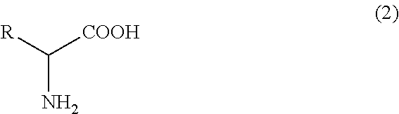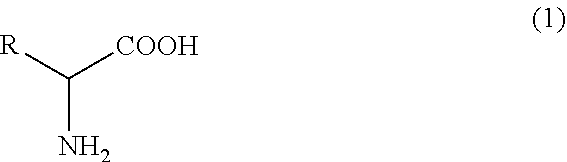 wherein R represents a C1-20 alkyl group optionally having substituent(s), a C7-20 aralkyl group optionally having substituent(s) or a C6-20 aryl group optionally having substituent(s), or cyclic L-amino acid represented by the formula (5):