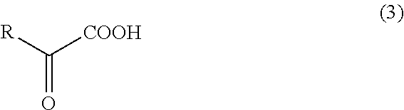 wherein R represents a C1-20 alkyl group optionally having substituent(s), a C7-20 aralkyl group optionally having substituent(s) or a C6-20 aryl group optionally having substituent(s), or 2-oxo acid represented by the formula (3):