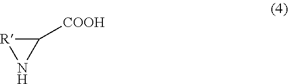 wherein R represents as defined above, or cyclic amino acid represented by the formula (4):