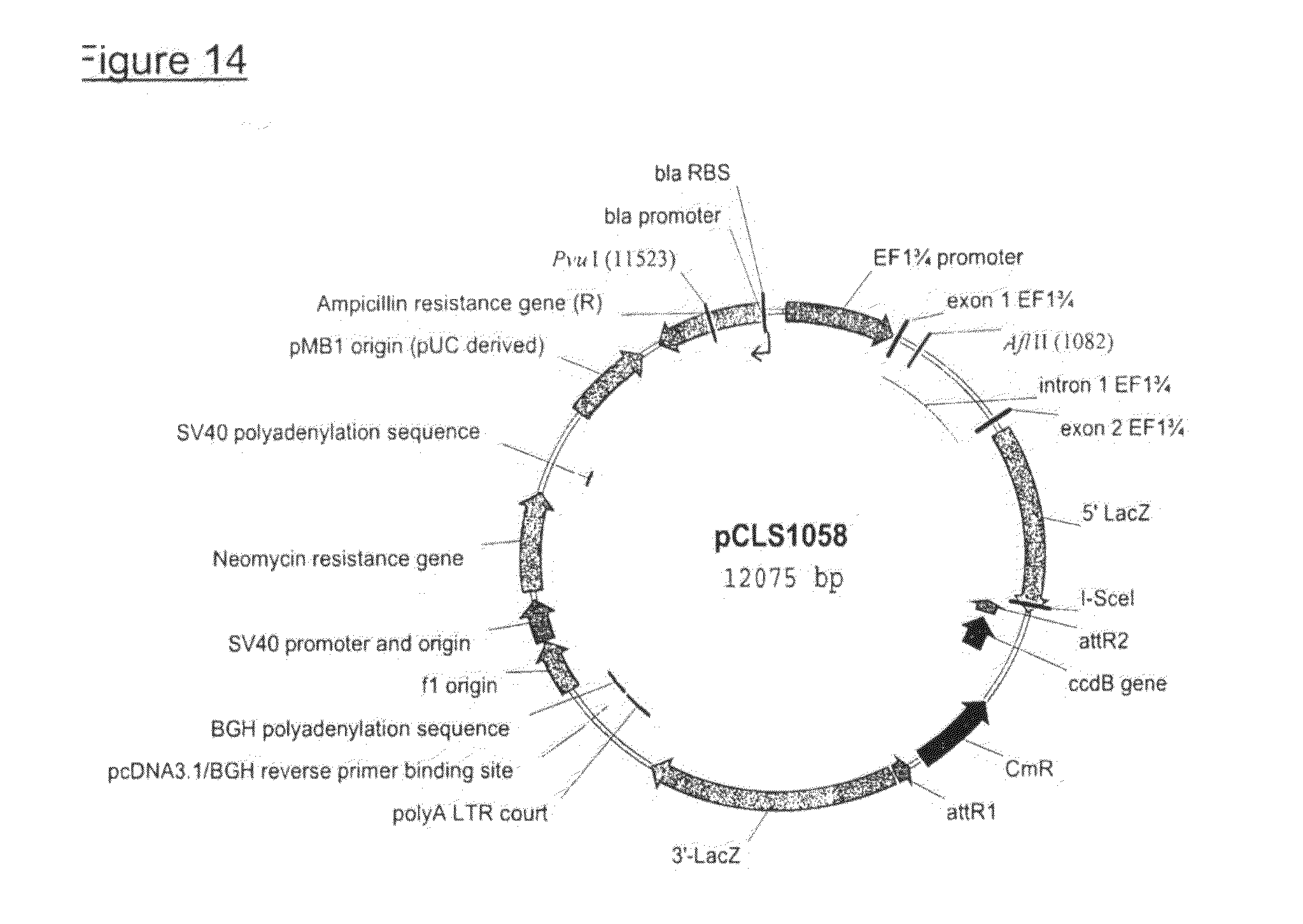 A second gene targeting vector was constructed with the same strategy of exons knock-in (pCLS1976, FIG. 24). In pCLS1976, 3% of heterology in nucleotides was introduced in the cDNA exons 5 to 8.