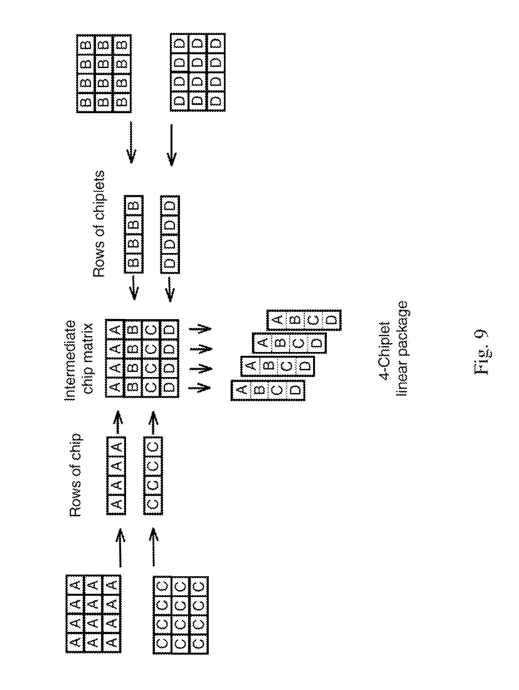 FIG. 9 illustrates a method of assembling chips by moving free chips in rows and columns.