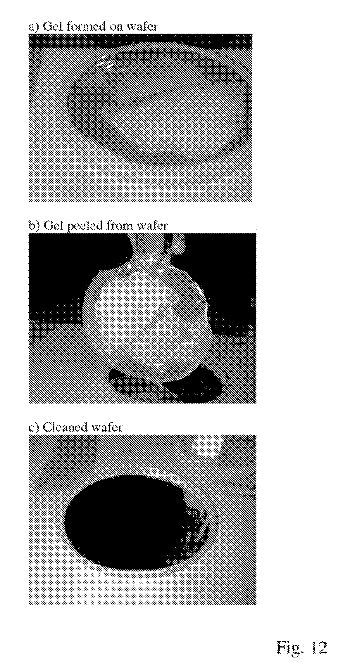 FIG. 12 is a photograph of hydrogel formed on silicon wafer.
