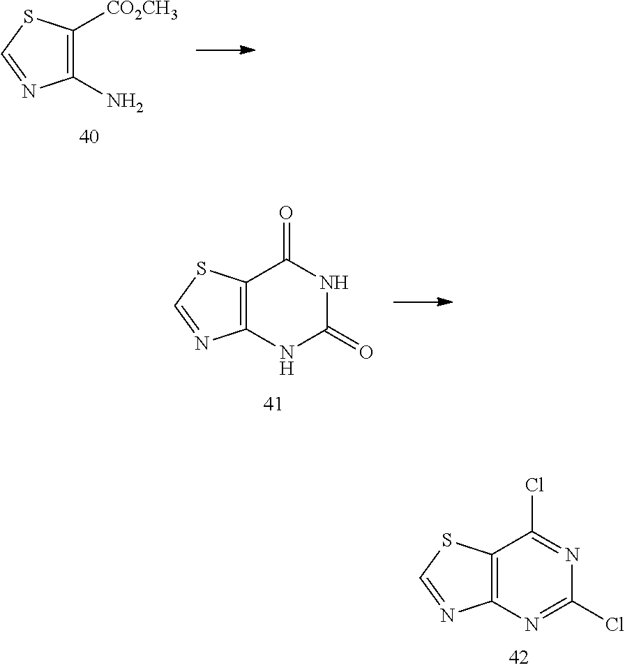 5,7-dichlorothiazolo[4,5-d]pyrimidine 42