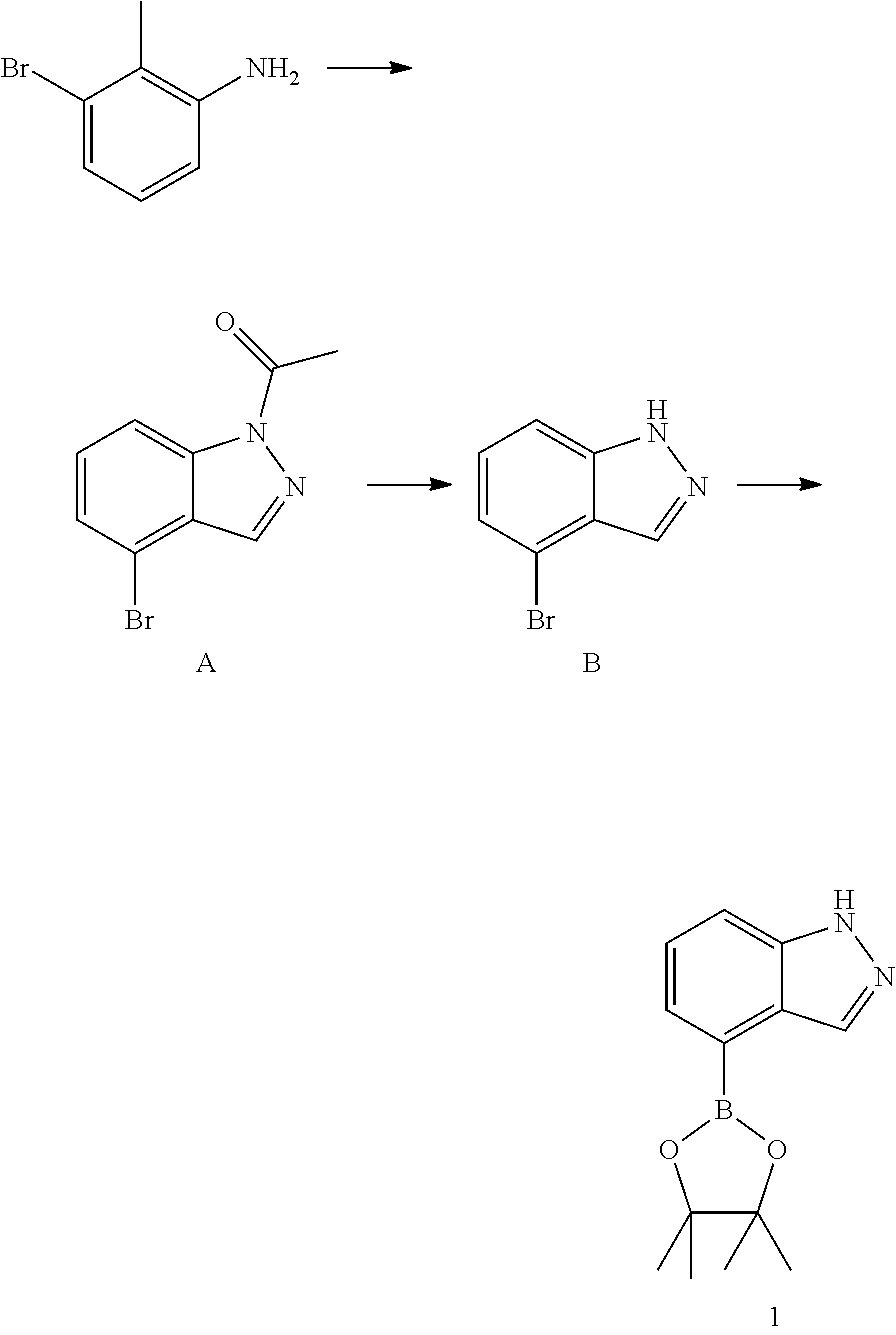 1-(Tetrahydro-2H-pyran-2-yl)-4-(4,4,5,5-tetramethyl-1,3,2-dioxaborolan-2-yl)-1H-indazole 62 (Route A)